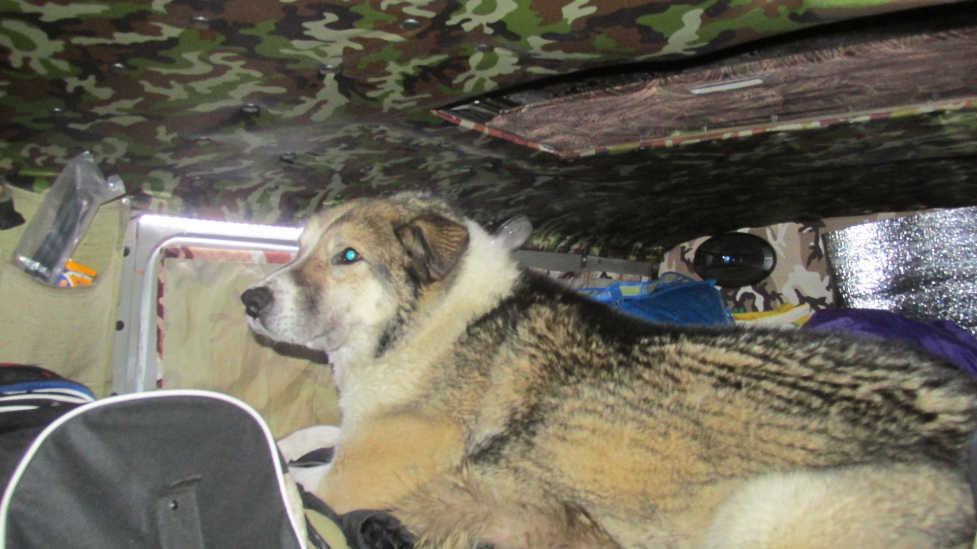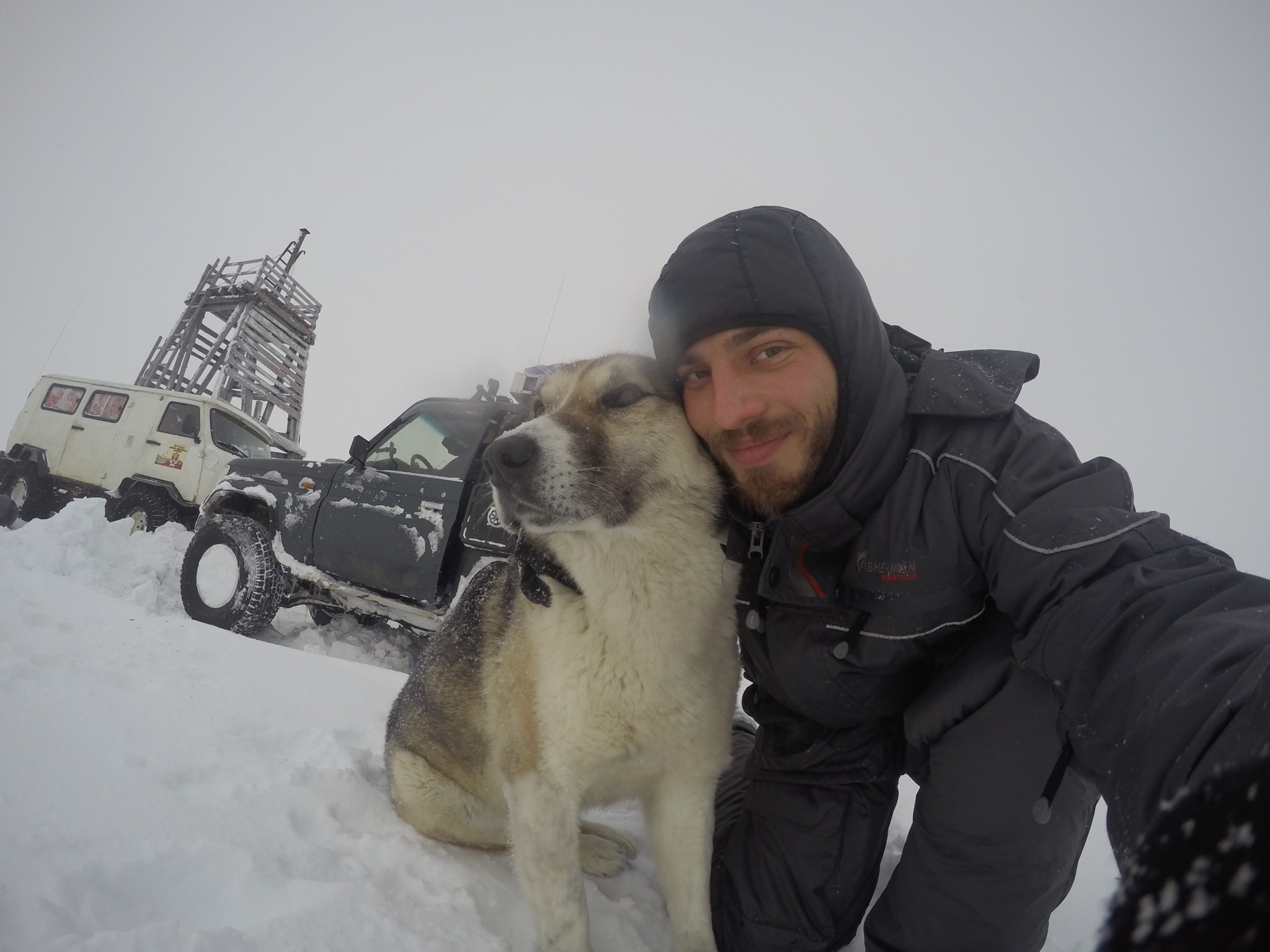 Но когда мы пройдя пролив Малыгина встали на ночлег в пургу, то утром его обнаружили за машиной, занесенным снегом. Лапы его были забиты льдом, шкура вся в сосульках, он еле стоял на ногах.