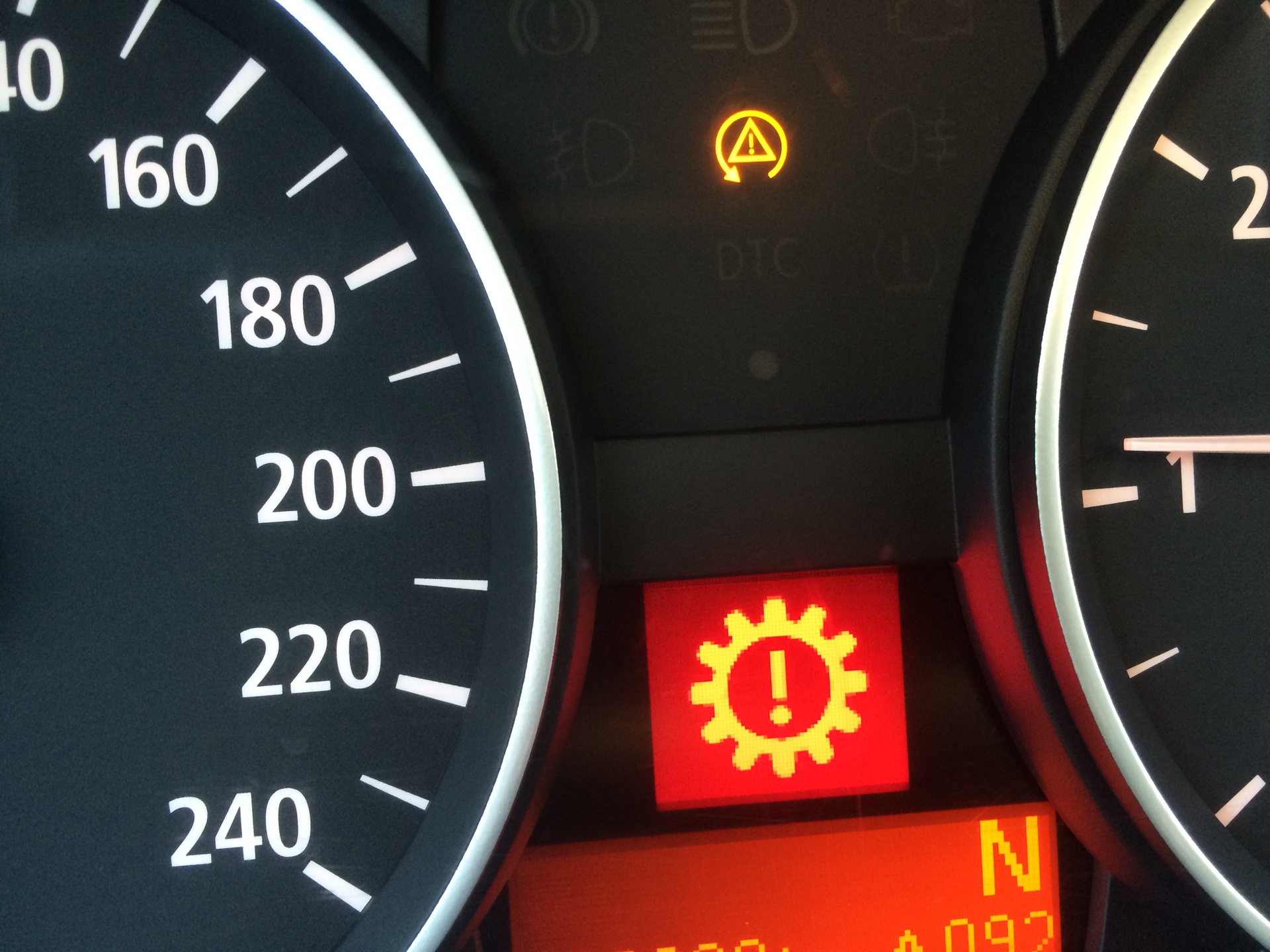 Думаю-Че за дела? Пытаюсь заводить- На приборке 2 ошибки- Желтый знак и шестеренка.
