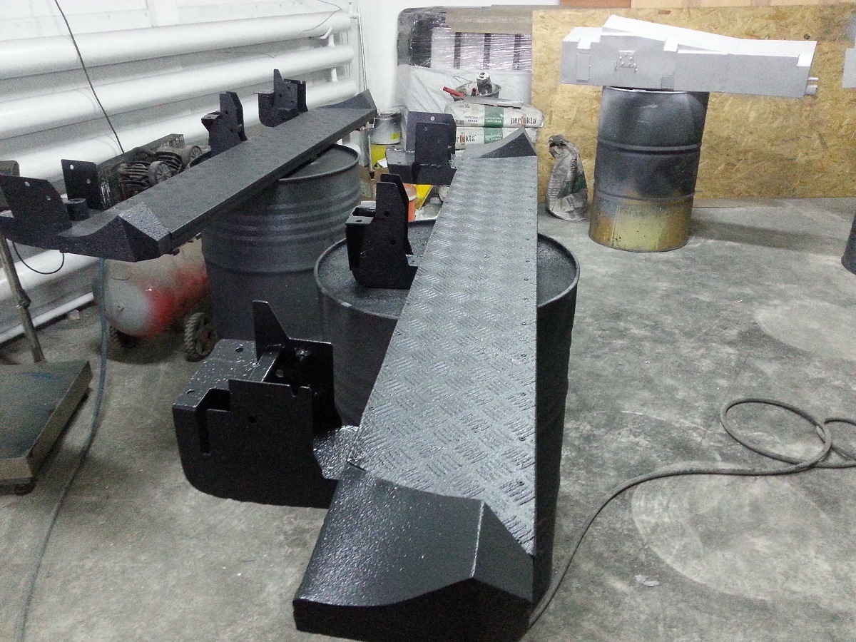 Действительно, силовые (28 болтов на два порога), широкие (+40 мм), удобные для ноги, капитальные (весом 21 кг каждый). Покрытые полимером ("секретный" состав от Бауманца — типа "полимочевина", или что-то еще…).