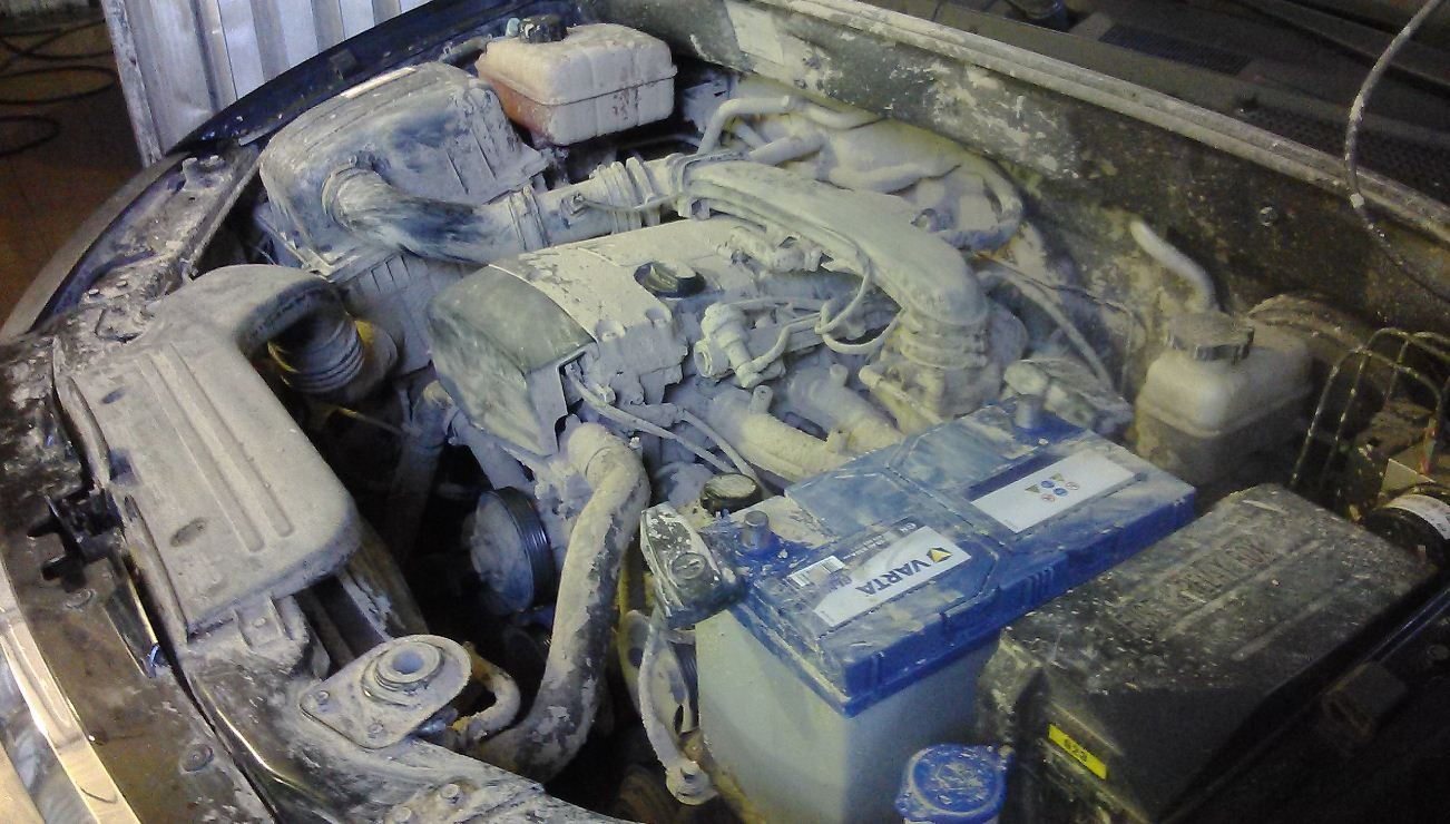 Выхожу на улицу — открываю капот, что бы глянуть уровень тормозухи, и понимаю, что под капотом меня ждёт "сюрприз" — открываю и мне хочется плакать — весь, нет, не так, ВЕСЬ-ВЕСЬ-ВЕСЬ моторный отсек в песчаной грязи, как будто ведро цемента плеснули на вентилятор — пар изо всех щелей… Твою же мать, что я натворил… ну что смог вытер, поехали к дому.