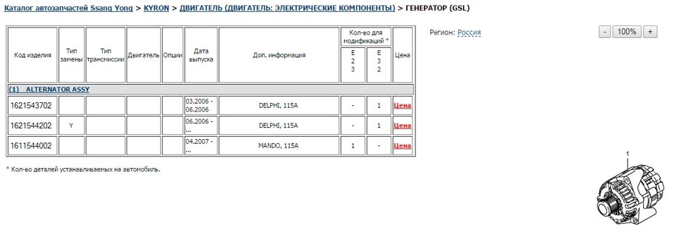www.ssangyong.pro/ Вот тут по вину можно пробить. Там будет показано какой гена