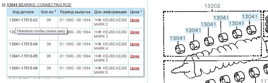 Запрашиваем 13041-17010-02, это номер шатуна с размером 2, что бьется по вину