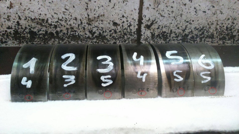 В начале я хотел сразу все заказать, чтобы снял поддон и сразу же все и поменял (в не зависимости от состояния), но, оказывается на разных двигателях, стоят разные номера вкладышей (от 2 до 6). Более того, от цилиндра к цилиндру номера вкладышей могут быть совершенно разными! По этому чтобы узнать именно те номера что стоят у тебя, следует снять все вкладыши!
