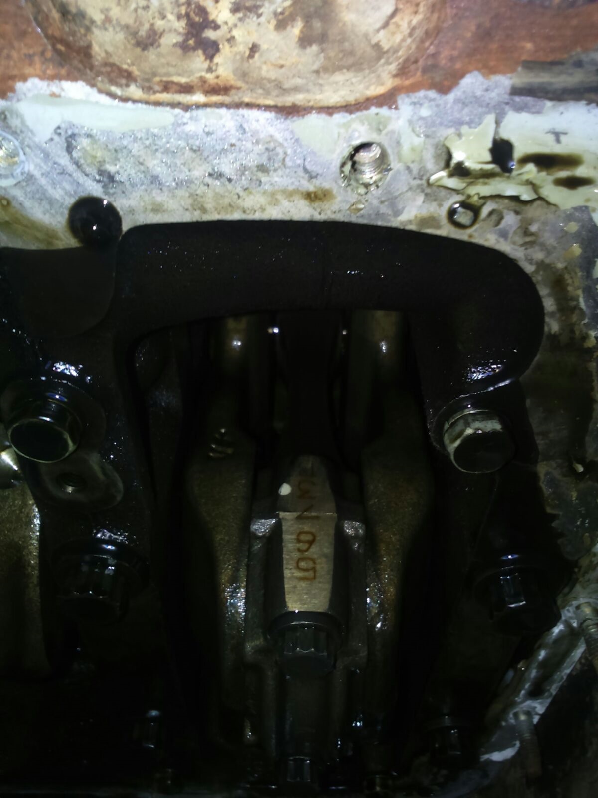 Верхний шатун пятого цилиндра показал нам до боли известную картину с интернетов: