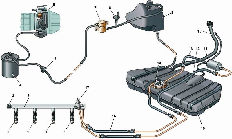 Наши инженеры решили упростить систему питания автомобилей ВАЗ, и изобрели топливную систему без обратки.Мой автомобиль не стал исключением. Но для турбо мотора обратка должна быть обязательно, т.к. регулировать давление топлива соответственно давлению наддува без неё никак не получится. Но есть и хорошая новость, в нашей системе питания присутствует Адсорбер…Для нас он не нужен, а вот для реализации обратки как раз то, что нужно. Для начала рассмотрим систему питания двигателя ВАЗ 21124