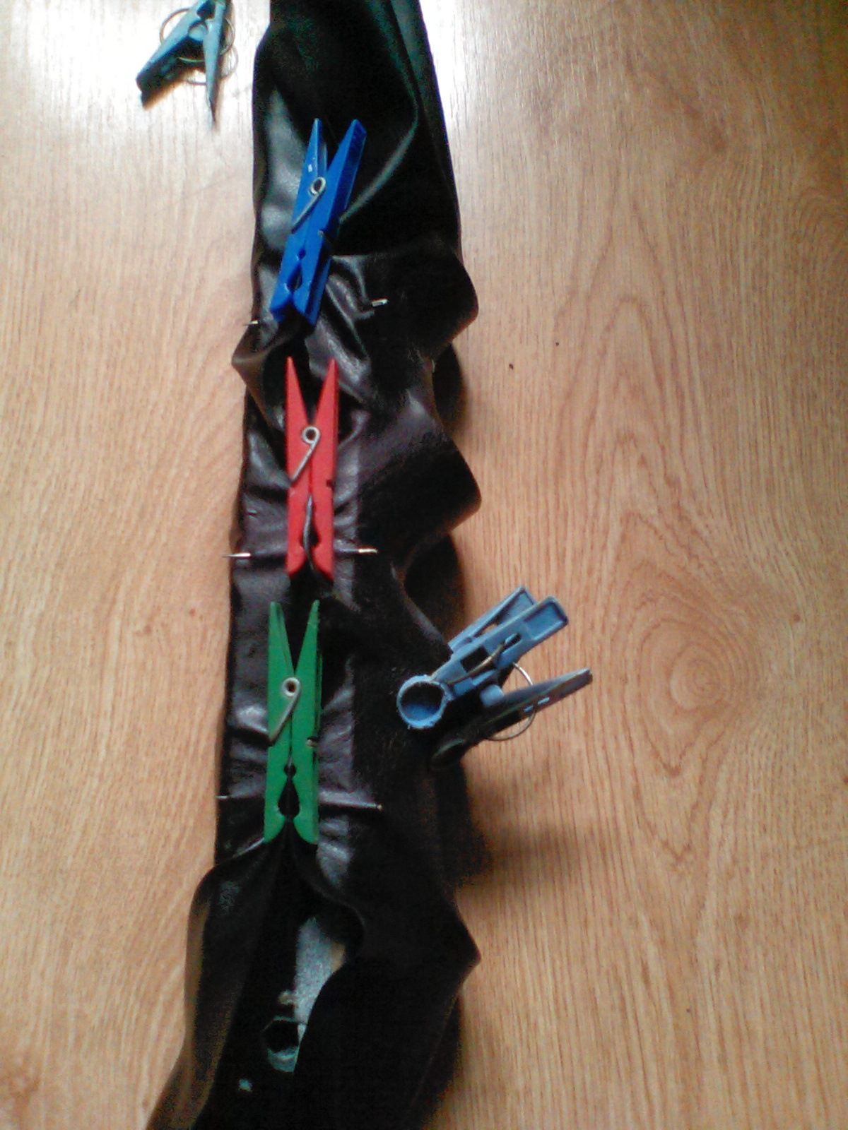 Натянул колготы ( спертые у своей любимой)) и закрепил прищепками