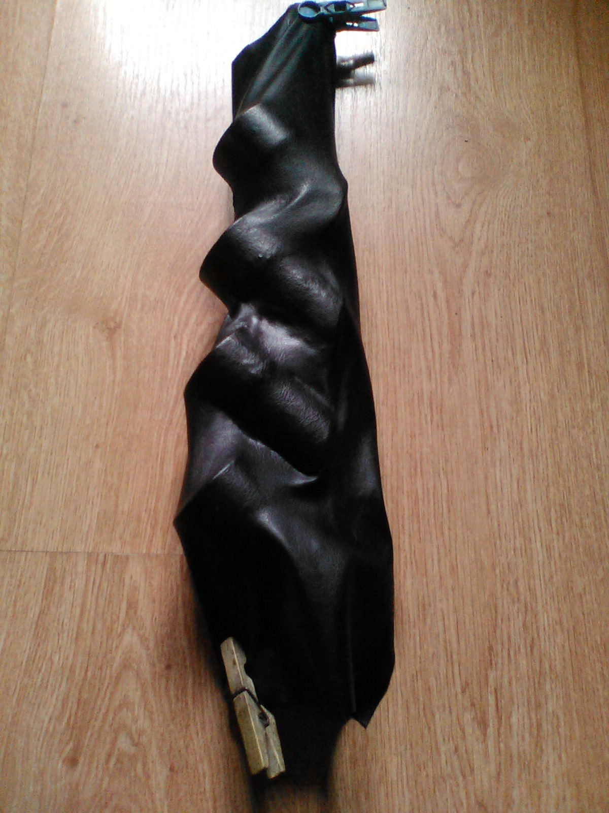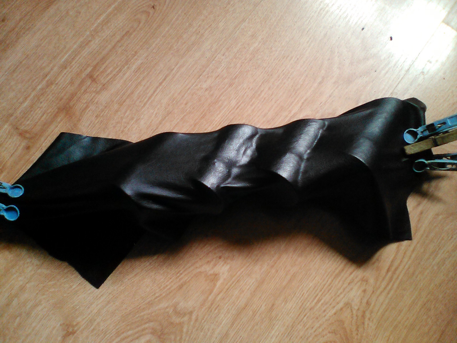 Начинаем обтягивать, я выбрал кож-винил, довольно хорошо тянется, но можно перепалить феном ( у меня получилось обтянуть с 2 раза ). Клей взял 88