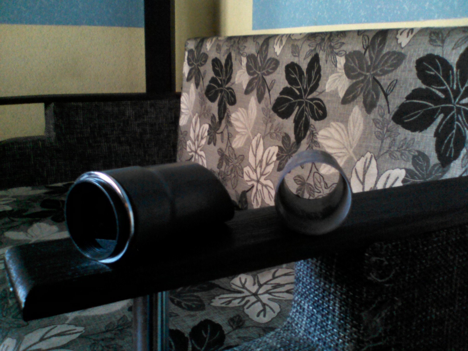 Далее феном нагрел трубу до мягкого состояния и прибором расширил отверстие