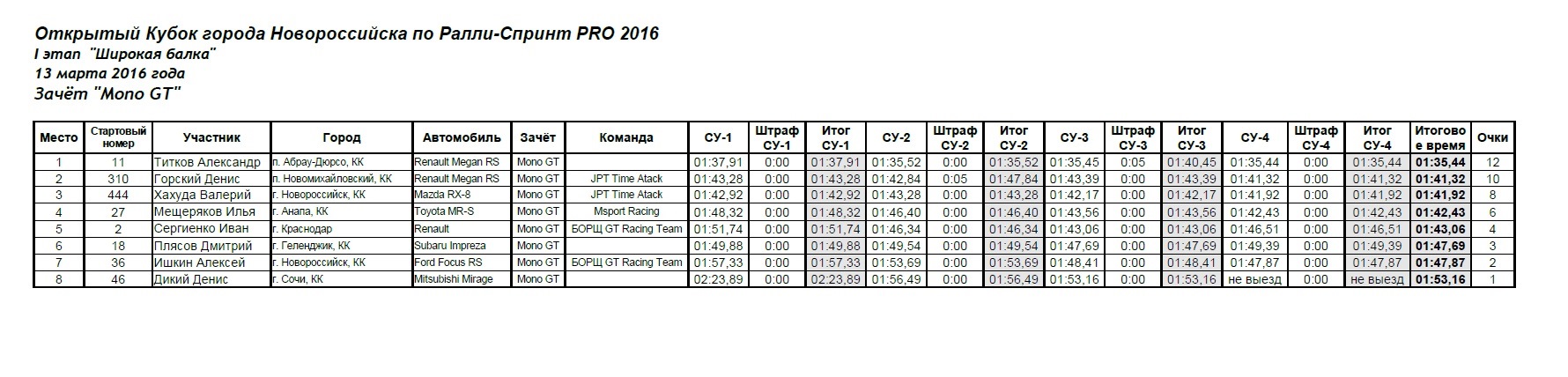 Так же за нашу команду JPT.TimeAttack участвовал Горский Денис DeNismeGanRS на Renault Megane RS и Валерий Хахуда на Mazda RX-8 в классе MonoGT и Аникин Вячеслав slavakrd в классе Street.