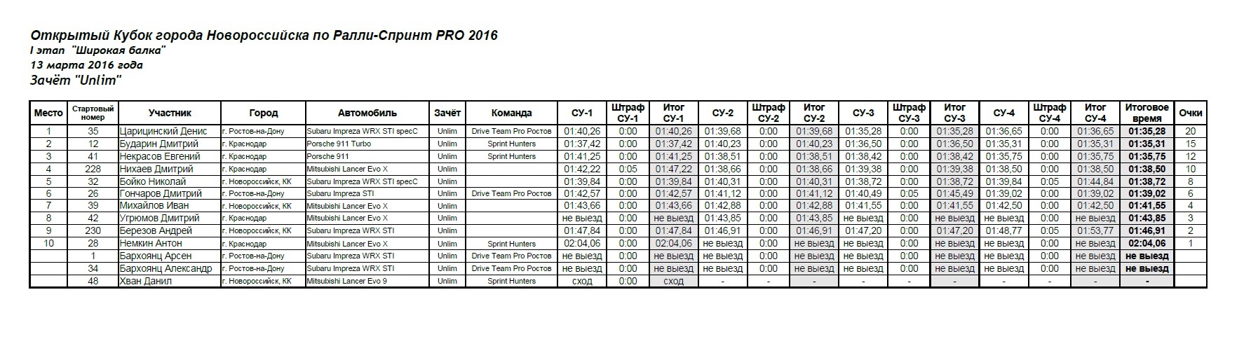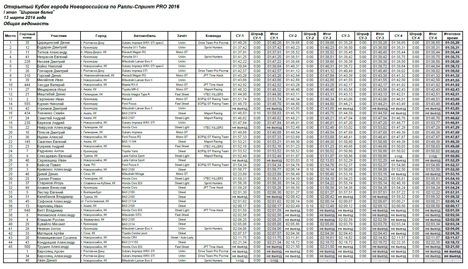 Быстрее всех проехал Царицинский Денис на Subaru Impreza WRX STI specC, чем весьма удивил всех, так как в прошлых этапах самым быстрым был Porsche.
