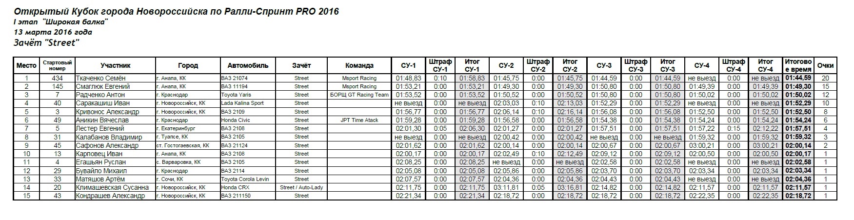 В классе Street Light ехал я, показал плохой результат, в итоге последнее место