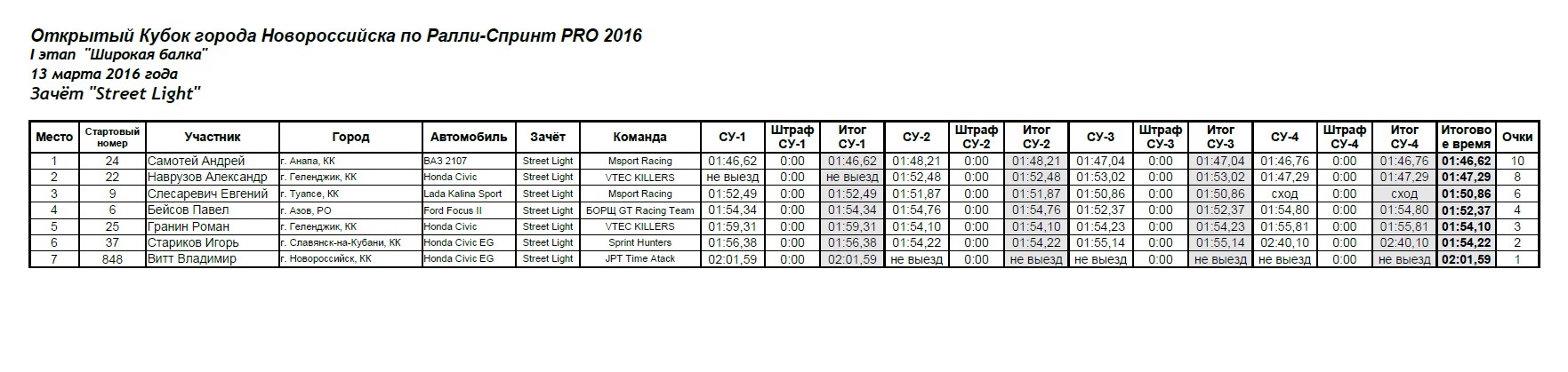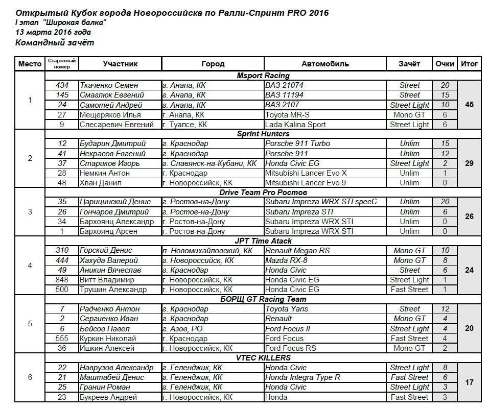 Гоночные выходные для меня и нашей команды, продолжились в воскресенье 13 марта, но уже дома в городе Новороссийск. Мы приняли участие в 1ом этапе "Широкая Балка" ОТКРЫТОГО КУБКА НОВОРОССИЙСКА ПО РАЛЛИ-СПРИНТ PRO 2016. Соревнования проходят на участке дороги, которую перекрывают в день соревнований. Участок длинной 3100метров, очень скоростной, некоторые успевают разогнаться до 180км/ч, все едут на подъем.