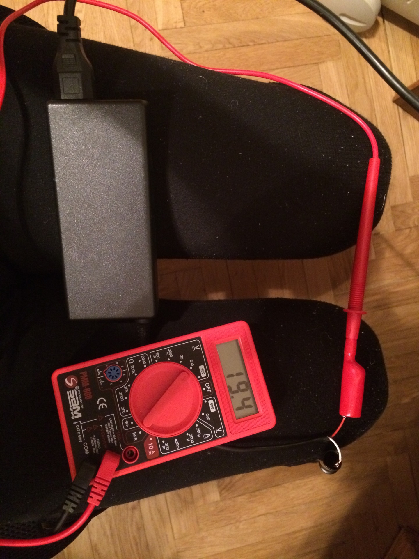 1) разрезал провод питающий ноутбук от блока питания и замерил его показания:
