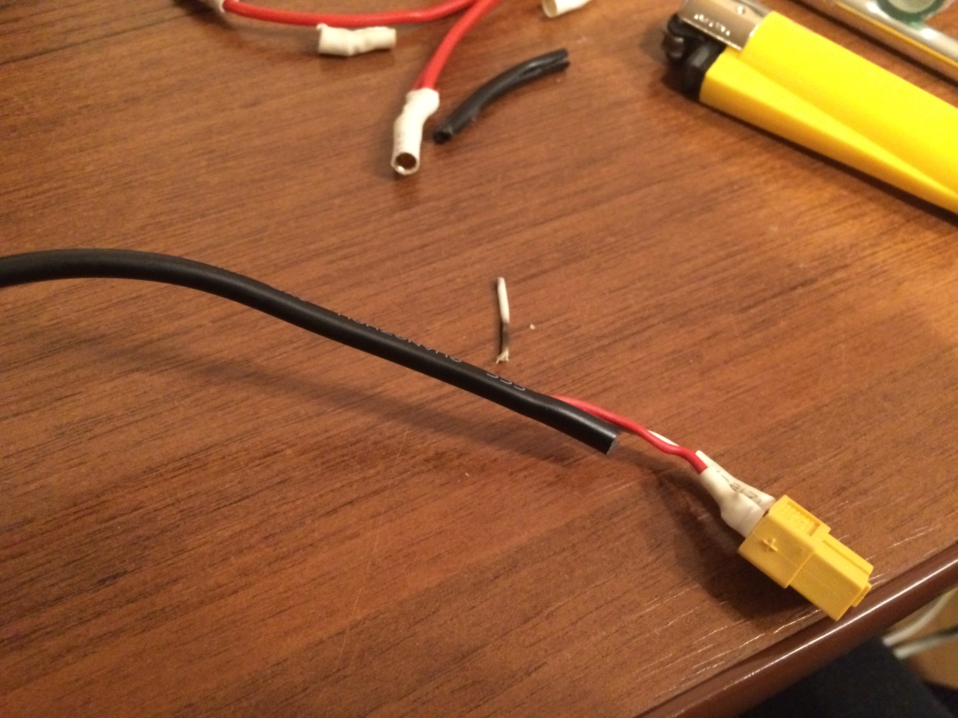 2) запаял в место разреза два коннектора (у меня в наличии дома были XT60) чтобы оригинальным блоком питания можно было пользоваться при необходимости.