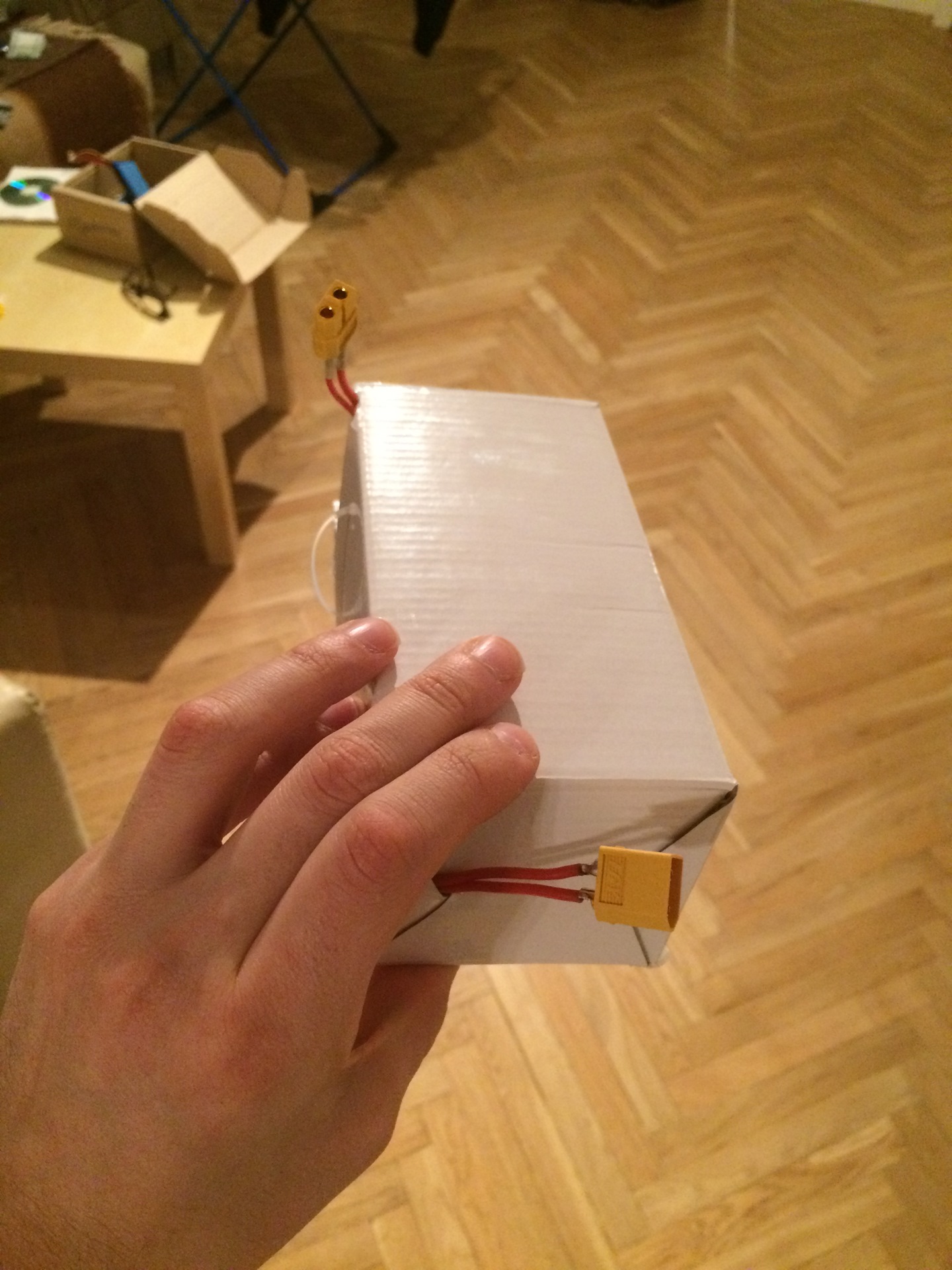 5) оформил все в картонную коробку чтоб провода не торчали (позже распечатаю на 3д принтере нормальный компактный корпус)