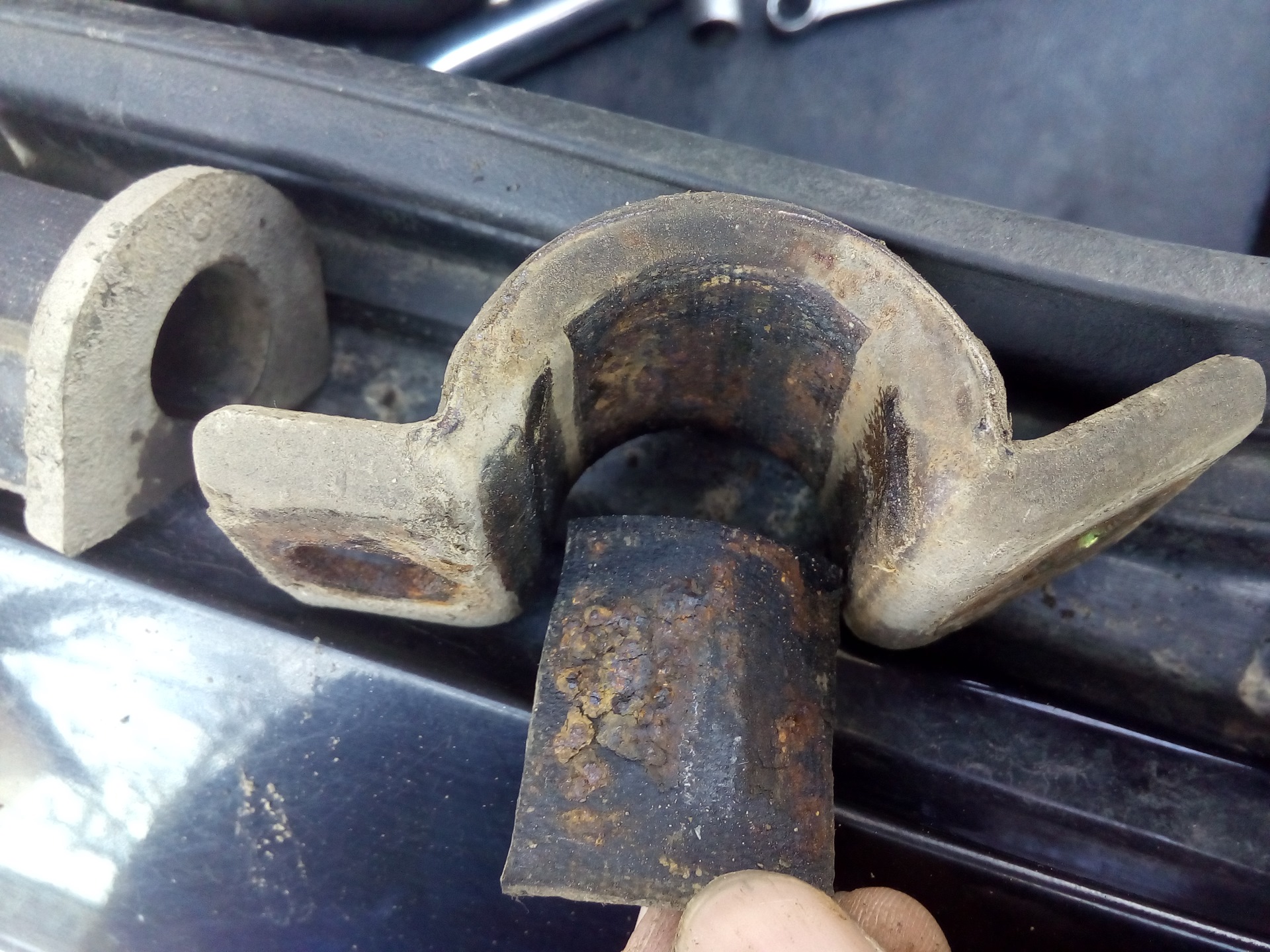 Про разборку ничего интересного написать не могу. Спиливать ничего не пришлось, кое где даже ВДшкой не пользовался. Удалось даже вытащить эксцентриковый болт на заднем развальном рычаге (с шаровой). Говорят у многих закисает так, что спиливать приходится. Болты кстати сейчас стоят в районе 650 рублей за штуку (оригиналы) и это без гайки и шайбы.