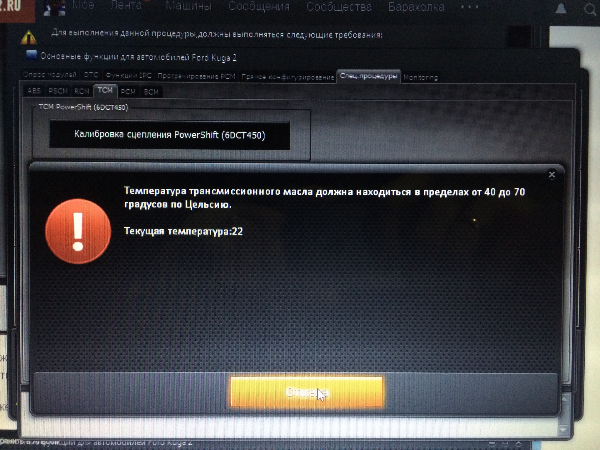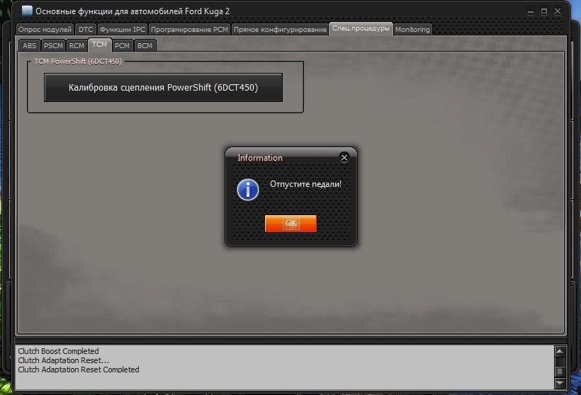 Недавно у разработчиков появилось обновление программы до версии v1.25.013. Так там появилась возможность самому делать адаптацию сцепления PowerShift (6DCT450). Только вот одно НО, это возможно сделать пока что через раздел для Kuga 2. Но ничего, бояться нечего, со временем сделают всё на своих местах. Так вот, далее заходим в раздел "Спец. процедуры"-> "ТСМ", там вот что: