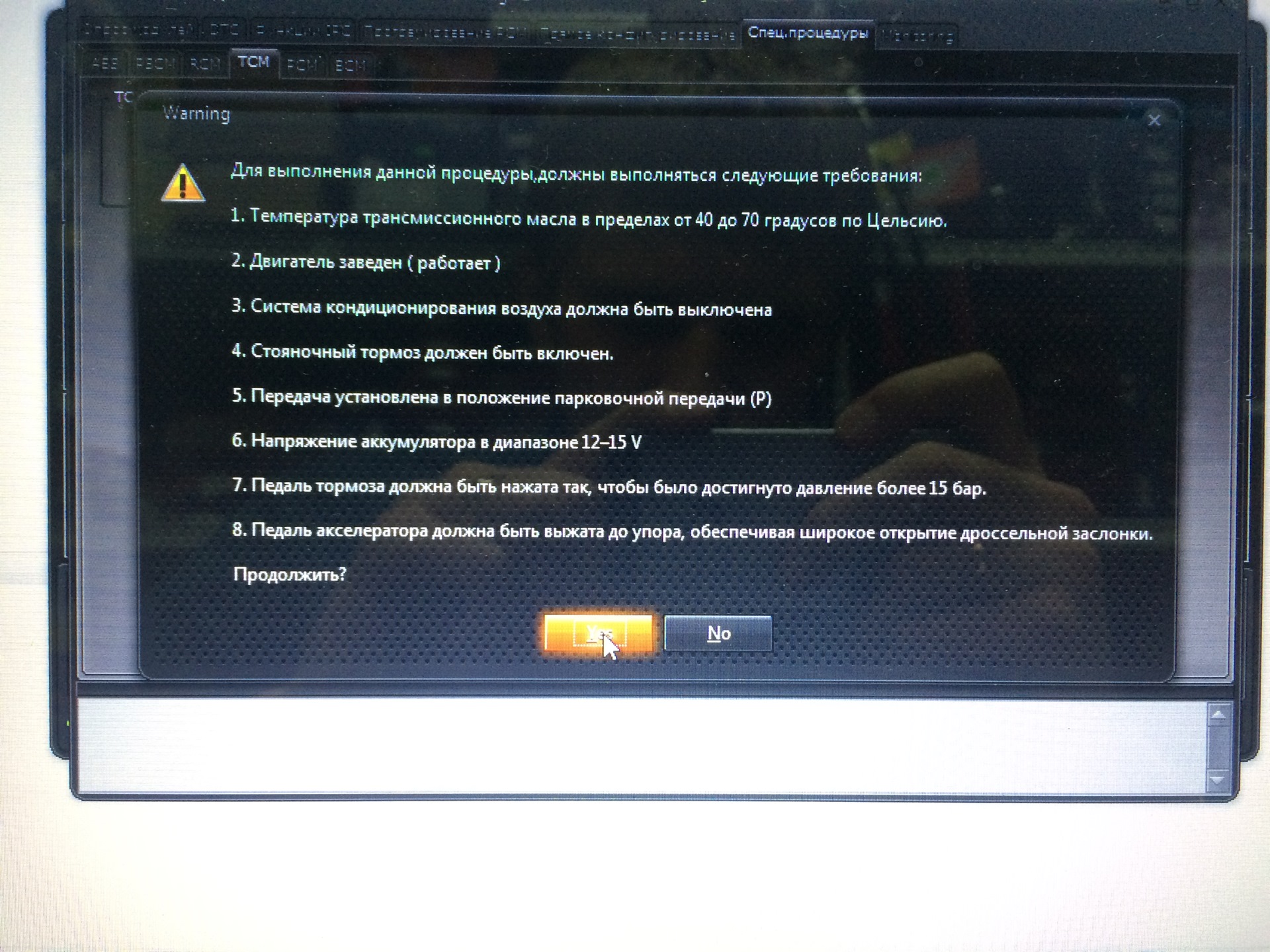 Стоял, газовал- газовал, снова делаю тоже самое, выскакивает такая информация, что масло в КПП не прогрелось еще. Поехал по району мини кружок сделал и вернулся к работе. Подключаю всё обратно, нажимаю "YES", ну и наконец-то стало всё отлично!