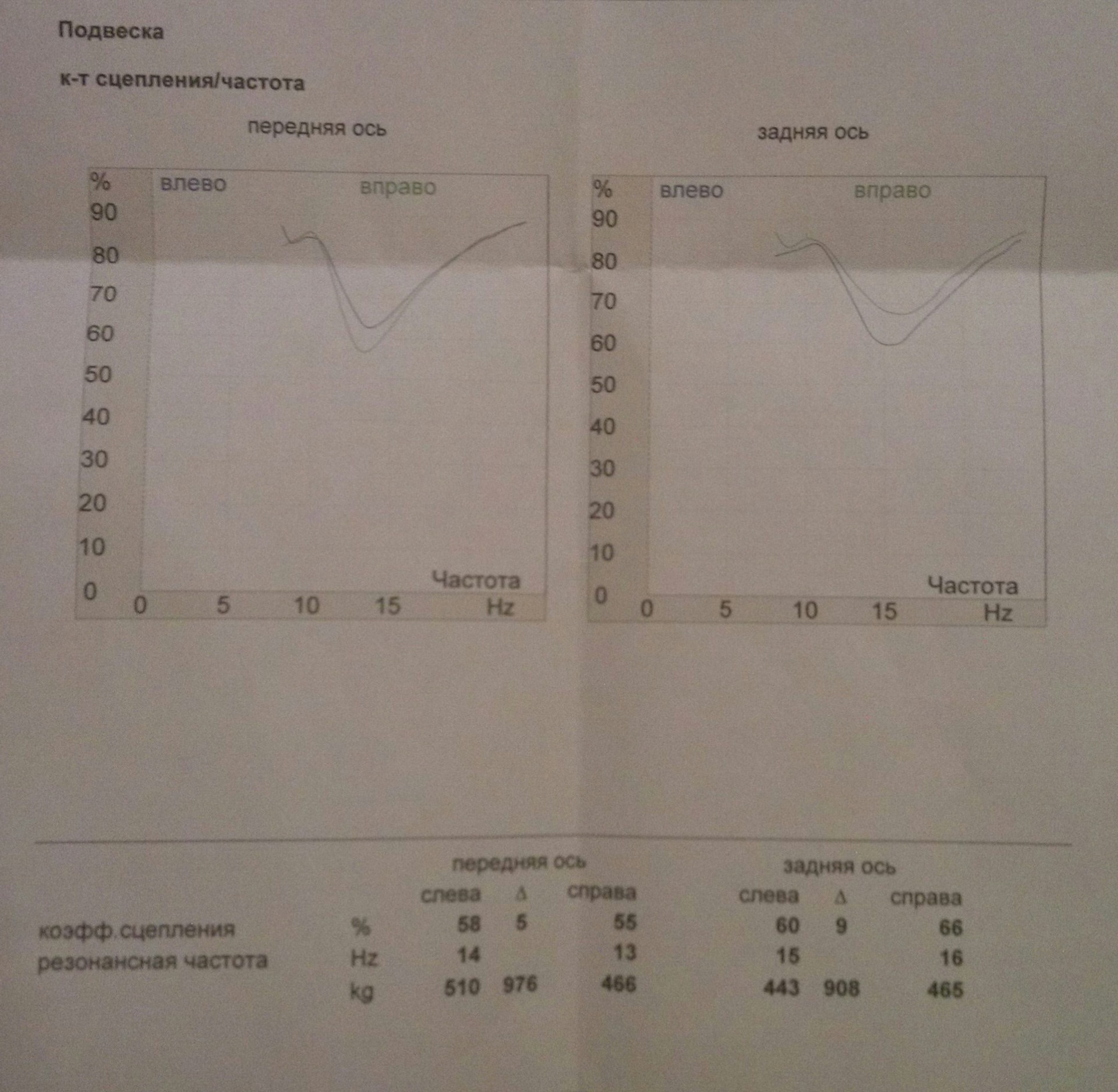 Ввиду мыслей про замену пружин, решил проверить амортизаторы. На вибростенде до этого не был, только слышал о нем. Поэтому сравнить не с чем. Если у вас есть данные по вашим авто — будет интересно услышать.