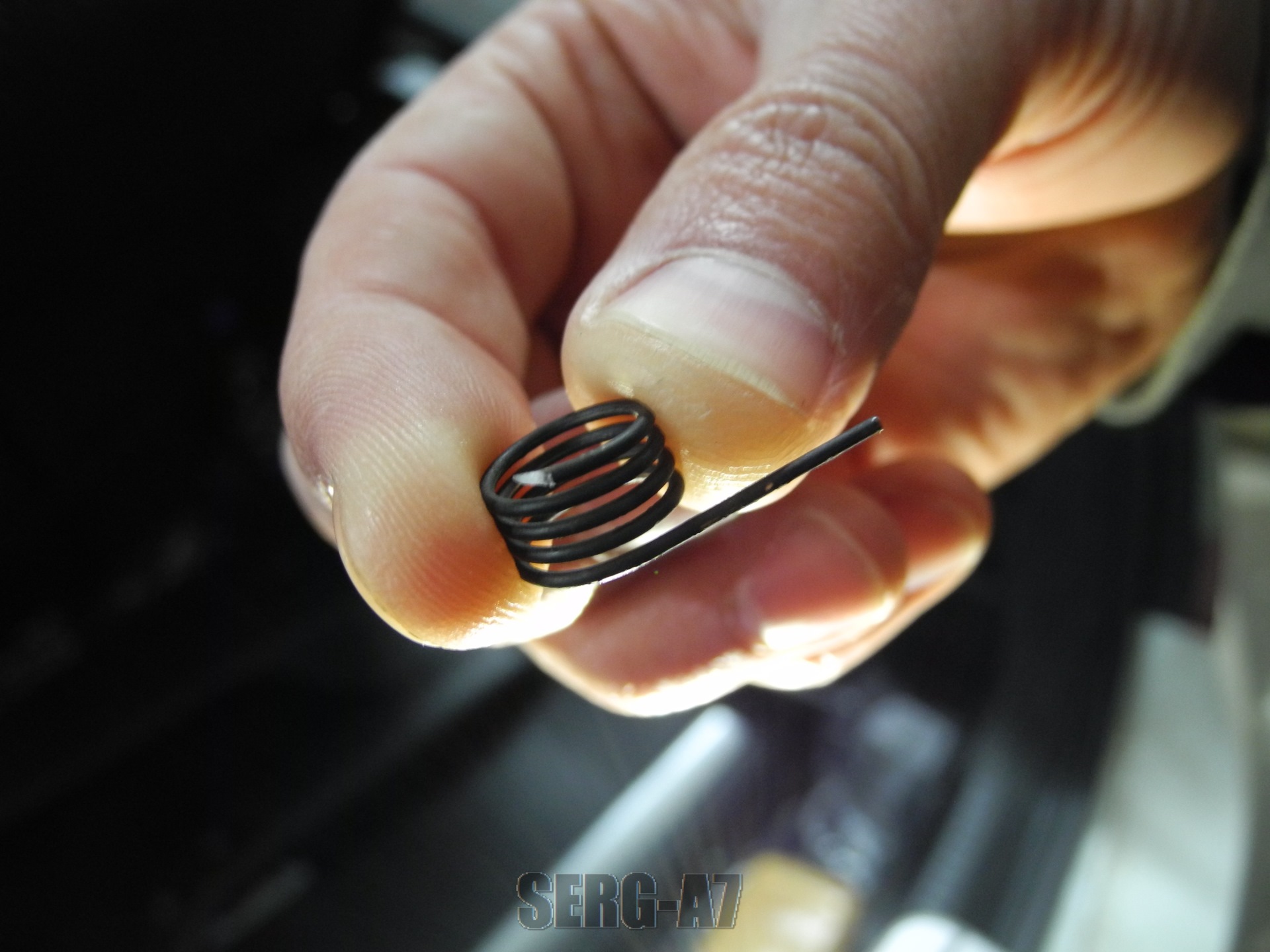Вставляем новую пружину со втулкой в ручку, далее все это в обшивку, пружина должна встать в свои места.