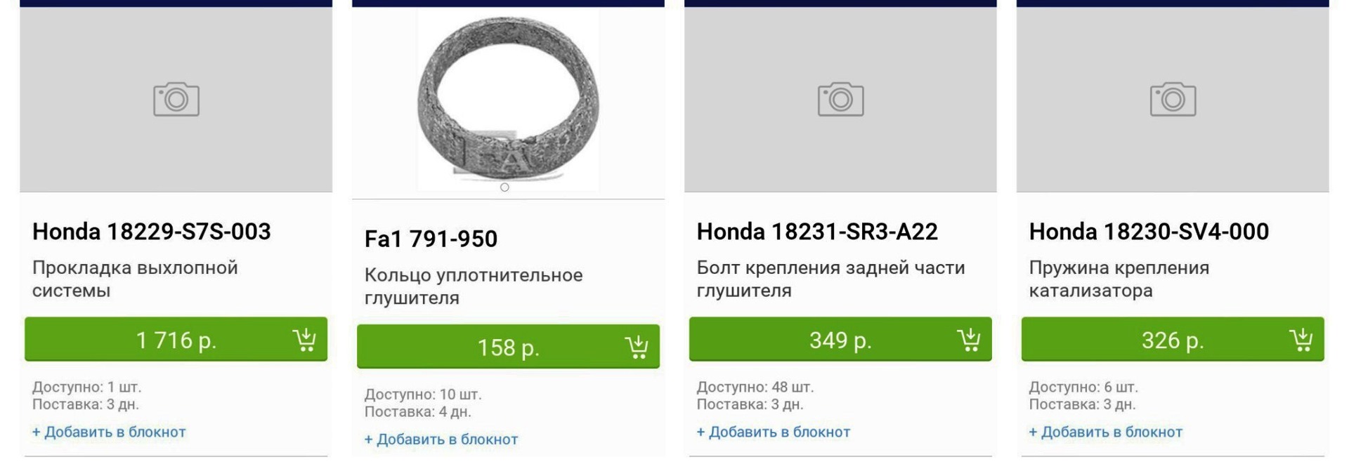 Номер оригинала кольца Хонда — 18229-S7S-003 – цена 1716р. (18229-S6M-003; в EXIST подбирается замена Fa1 771-965 (Цена 298р); от ВАЗ-2110 (Цена 80р)).