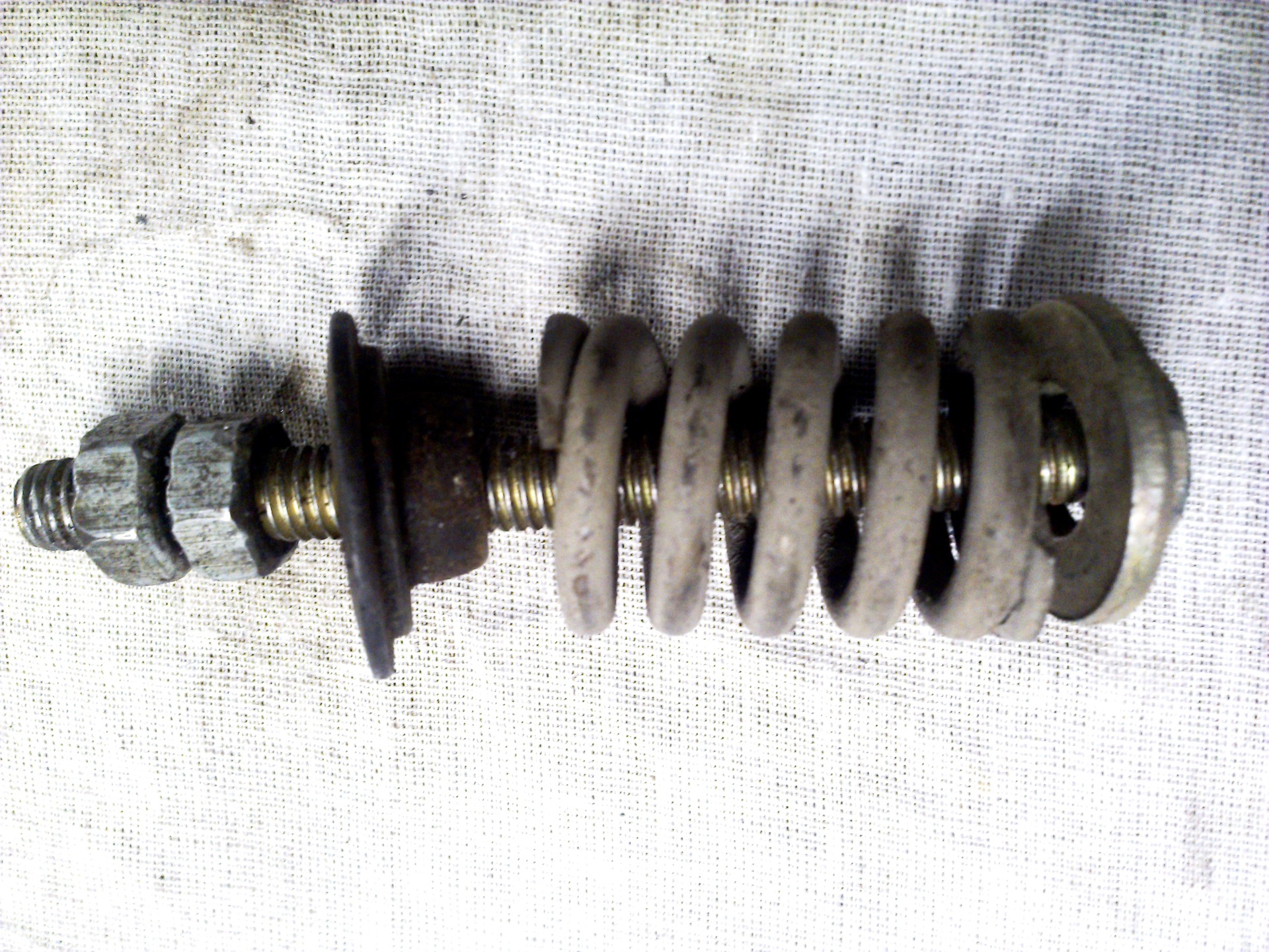 Родные болты срезаны болгаркой, остатки болтов выбиваются. Во фланцах простые отверстия, без резьбы. Просто сами болты прикипают со временем и ржавеют. Диаметр болтов больше родных, но в отверстия они лезут спокойно. Пружины я тоже ВАЗовские ставил, их главное сообразить какой стороной ставить, т.к. они конические