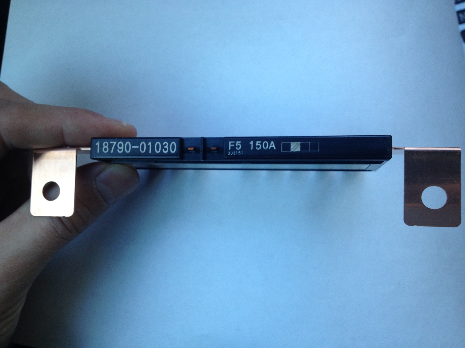 Была практически идентичная ситуация. Загуглил в нете "расчет плавкой вставки". На 150 А получилось 1,5 мм толщиной медной проволоки. Запаял на всякий случай чуть потоньше. Цена вопроса — 0 рублей. Цена 1600 за сраный предохранитель представляется мне несколько завышенной.