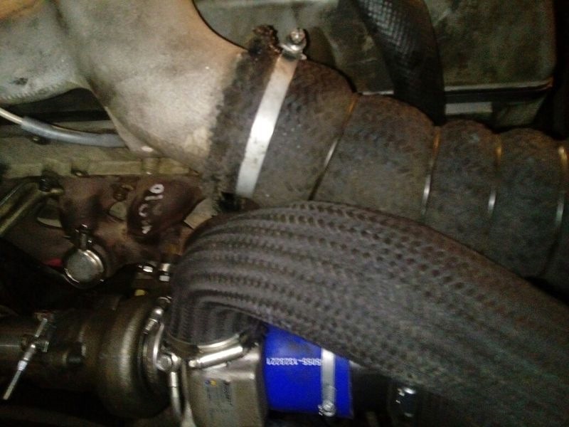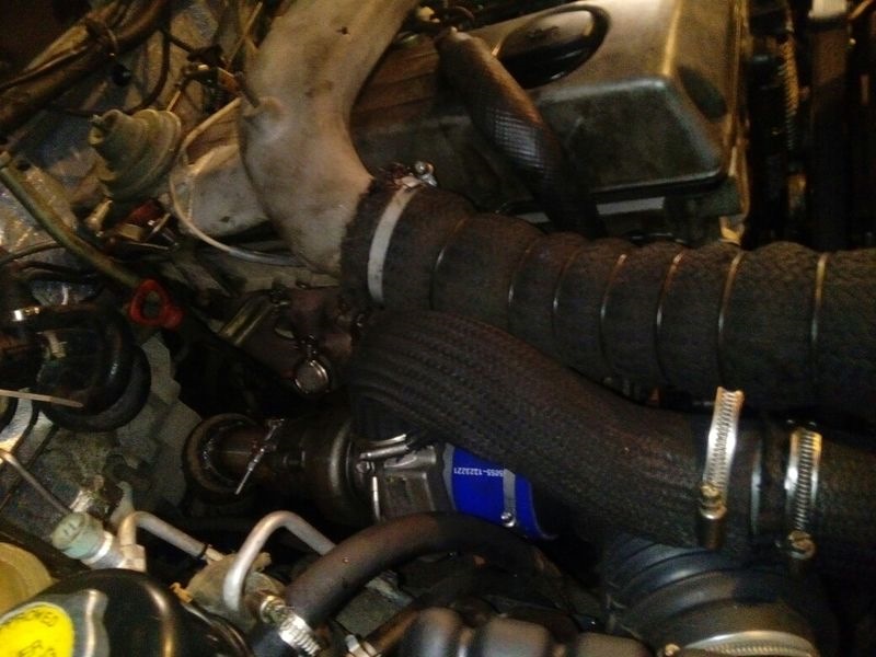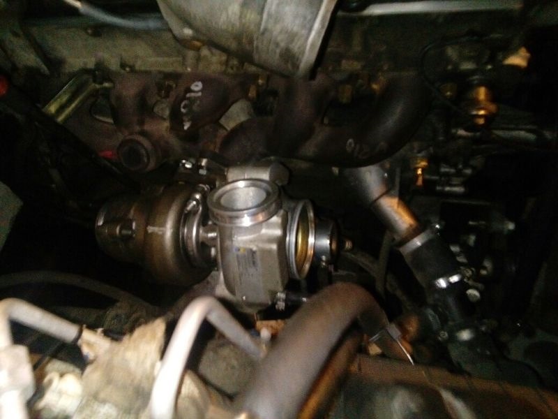 Поэтому пришлось с матами и пердячим паром натянуть на турбину родной шланг. Получилось не очень красиво, но как только найду хомут — переделаю.