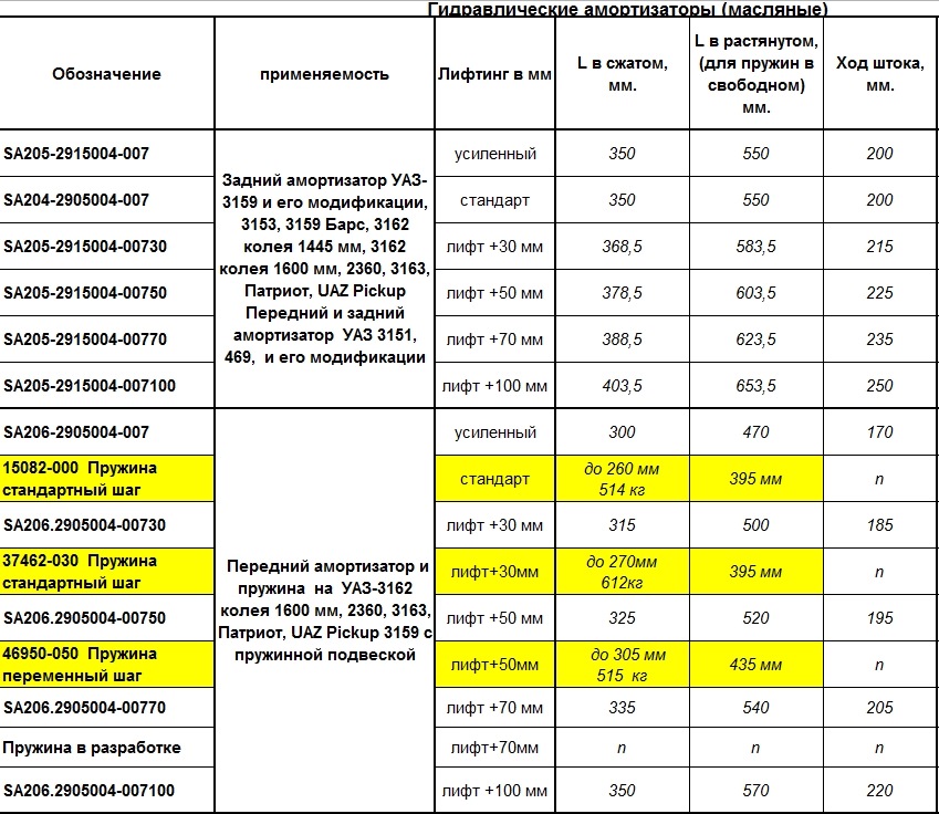 Хочу обратить ваше внимание, что желтым были выделены новые позиции в продуктивной линейке компании Нева-Комплект Плюс — это пружины для УАЗ Патриот.