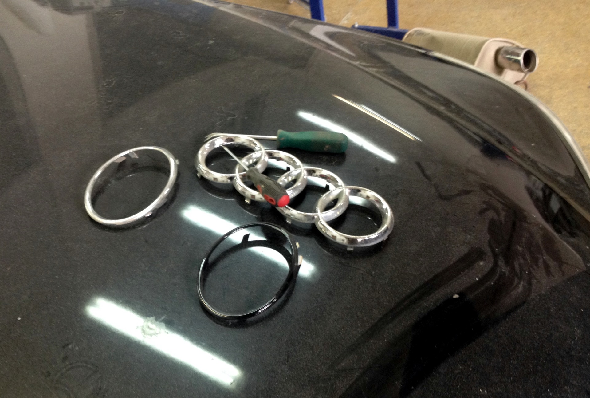 Также имелся в запасе комплект ободков ПТФ, центральные ОООО и лого quattro в решетке радиатора — все эти детали были вымочены в специальном растворе, недели две хром слазил, все таки слез и затем все было выкрашено в фирменный цвет кузова. Комплект хрома бережно снят и убран до лучших времен, ровно как и шильдики с крышки багажника. Такие дела нынче в ожидании сезона, всем хорошей, солнечной весны и настроения :) Осталось совсем чуть чуть и поедем ниже, шире, ярче :)