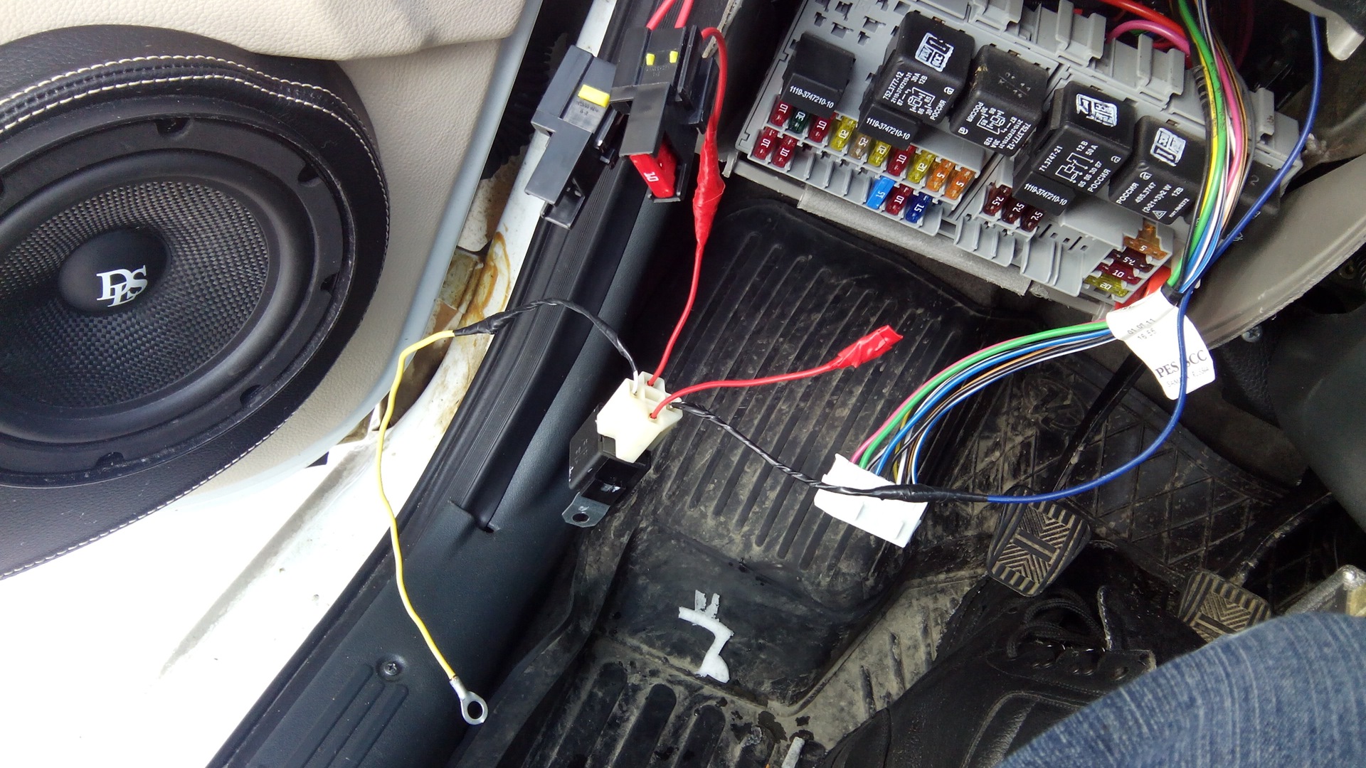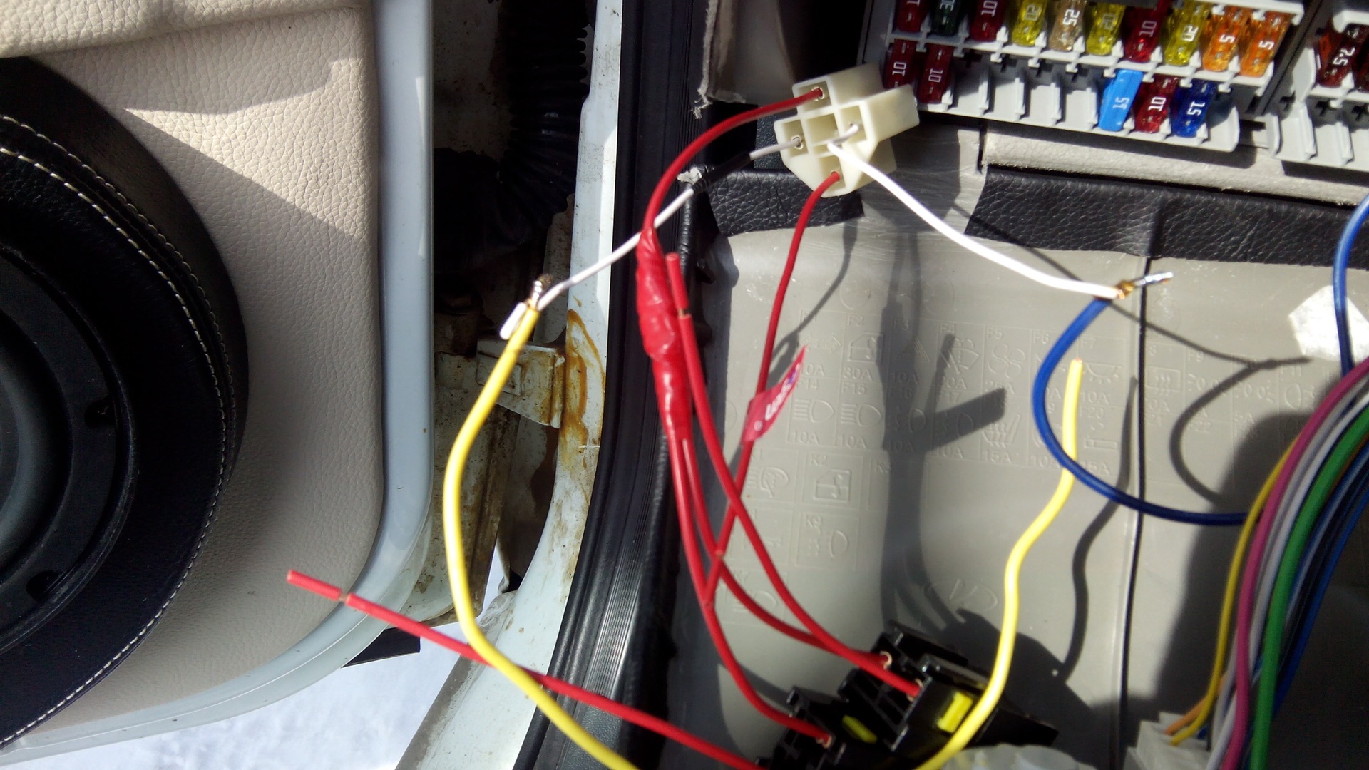 В монтажном блоке подсоединил преды с реле, реле соединил проводом с кнопкой, схем в и—нете полно. Плюс на реле пока еще не стал подключать, осталось подключить сами провода от птф и плюс к реле.Плюс, наверное, возьму с синечерного на МУСе, он тоже появляется только после зажигания.И толщина хорошая.Можно еще пред добавить после него для защиты всей новой цепи. Каждая лампа (вернее ее провод) защищена предом на 10 ампер.