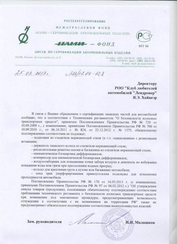 отправил им запрос по разъяснению.НО вроде когда мы покупали наши машины, то регламент ещё не работал и наш год с допами одобренными ленд ровер не подпадают под этот закон.