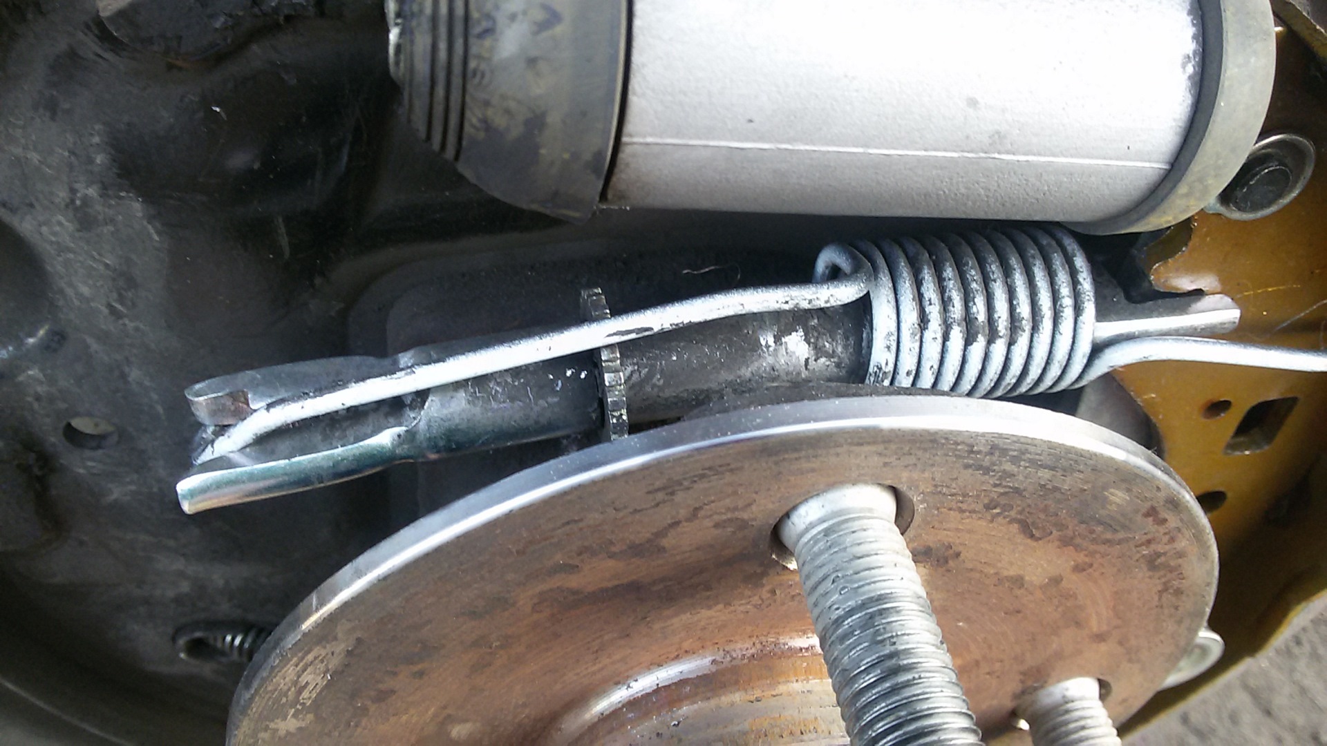 При снятии регулировочный болт закрутил. При установке, раскрутил его отверткой (развёл колодки).