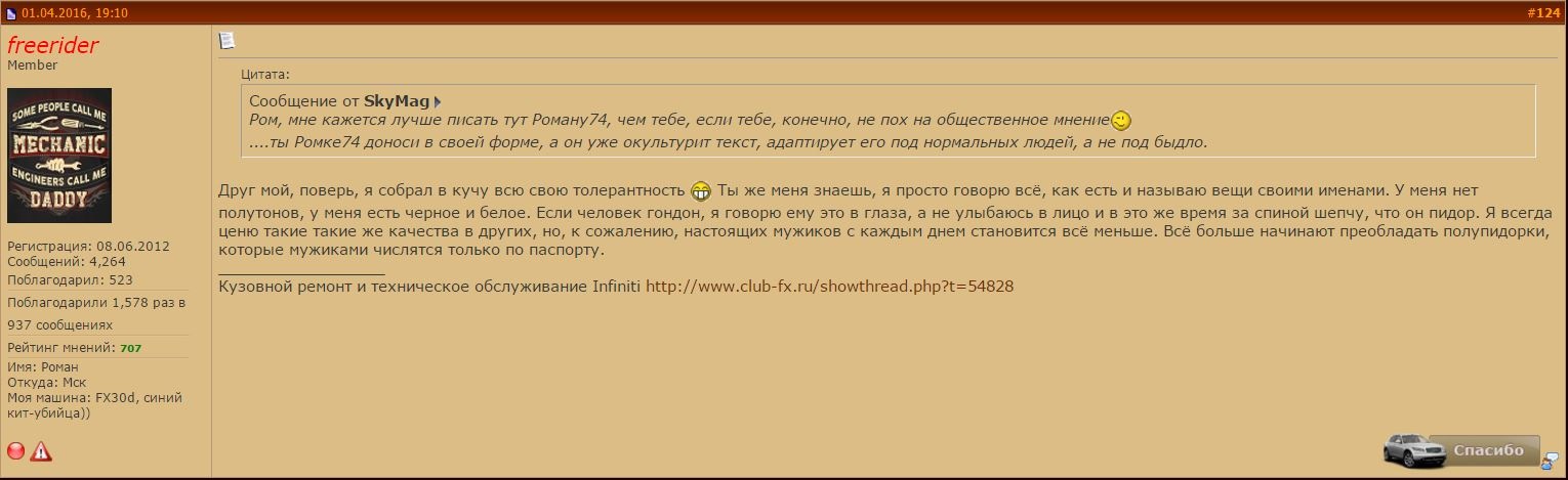 В общем, вот такой опыт и такие знания я приобрел, обратившись в эту компанию. Скриншоты взяты из этой ссылки club-fx Сам Роман (директор) на форуме после вышеизложенного, писал что ждет меня к ним в сервис, однако, после их угроз и понимания что для них каждый третий клиент пидр или полупидр, я для себя уже поставил жирную точку на этой компании и больше никому её не посоветую.
