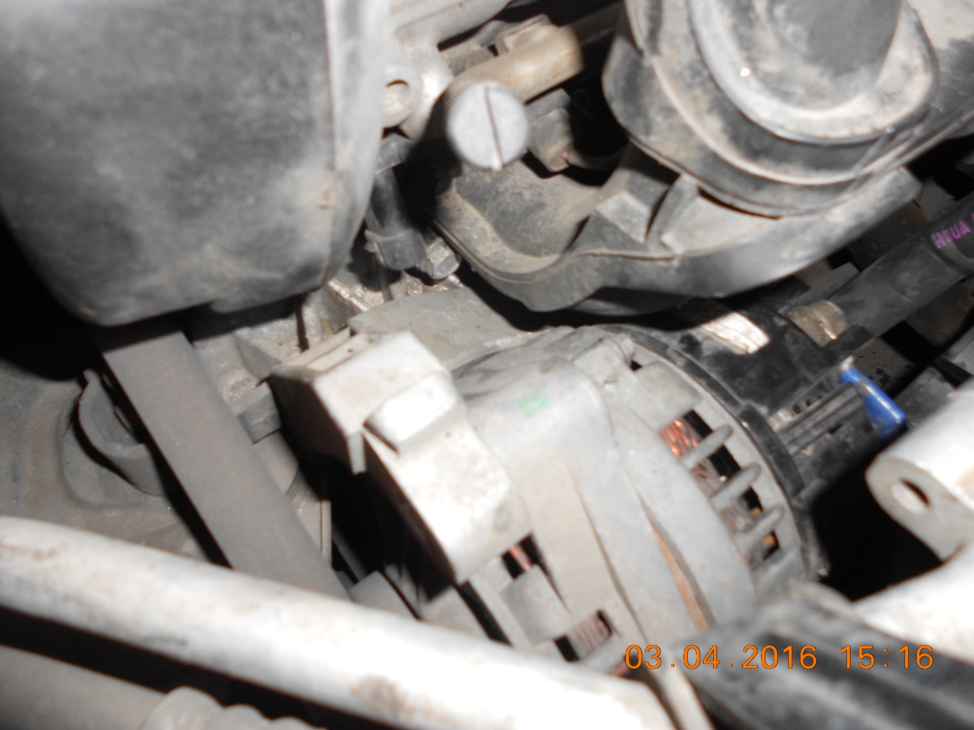 Снимаем ремень генератора, откручиваем верхнее крепление и аккуратно монтировкой отодвигаем гену в сторону радиатора.