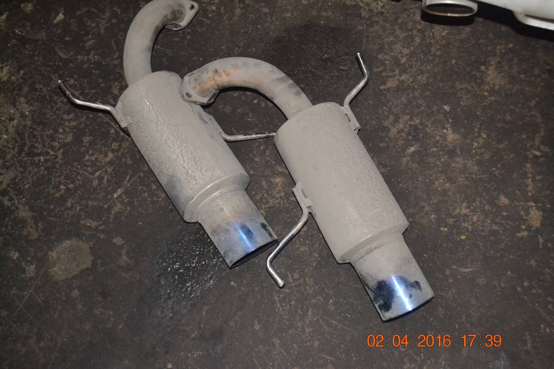 Знаем что для Легася мого есть неплохие выхлопы а именно: STI Genome, Blitz Nur Spec, HKS Silent Power, Kakimoto Racing итд. На местном форуме мог найти только STi Genome за 350$. Но как-то жаба знаете задушило взять за эту сумму. И в один день друг мне находить конечные банки Ganador Titan Rouge за символическую сумму, послушав в интернете видео на такой же машине как моя, решено брать, конечно видео не передаст все впечатления но все же понравилось звук.