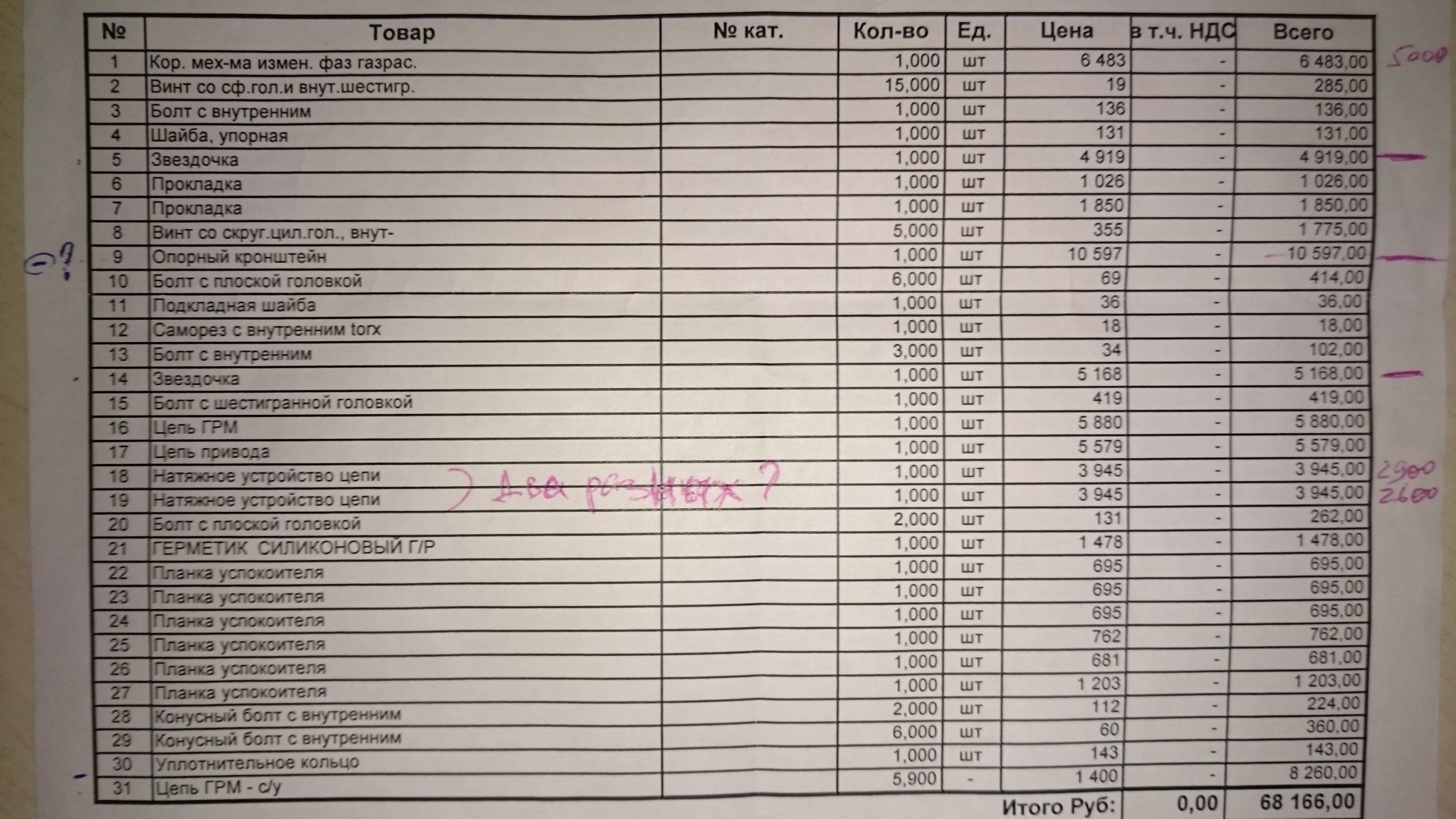 Развод на деньги…такой список будто капиталку собрались делать…звездочки цепь и планки натяжителя ходят по 200к прежде чем начинают растягиваться…все остальное в довесок)))
