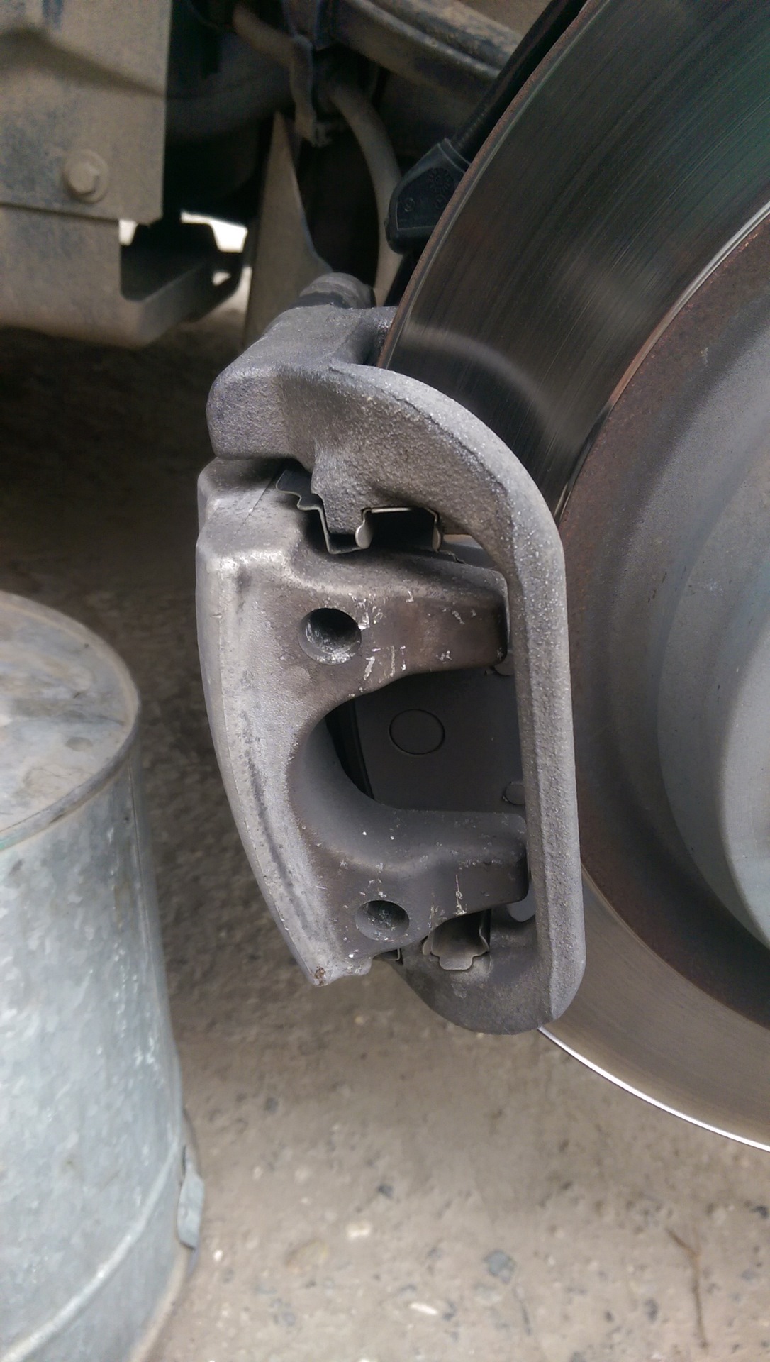 Дальше скоба суппорта снимается (достаточно легко), вынимаются колодки и ставятся новые.