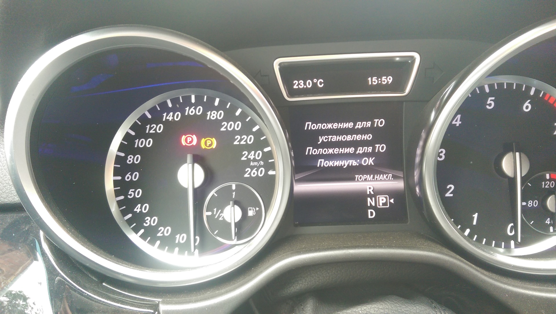 Для этого нужно включить зажигание в положение 1, дальше при помощи кнопки влево выбрать режим "путевой лист" (точно не помню — одометр в общем) и сразу же нажать и удерживать кнопки приема и отбоя вызова, а следом кнопку ОК. Эти кнопки нужно удерживать, пока на дисплее не появится меню сервисного режима. Дальше выбираем режим замены колодок и активируем его: