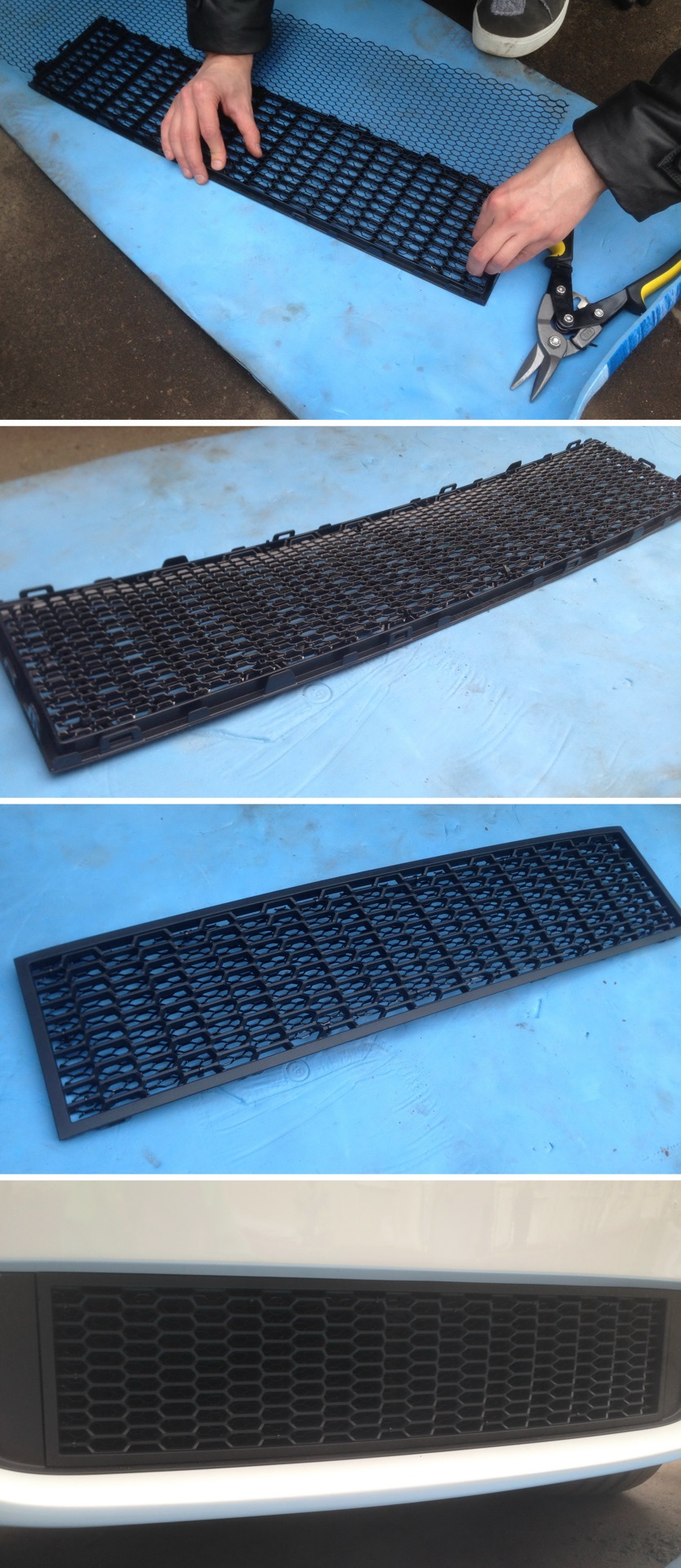 Ну и последний штрих, центральная решетка радиатора. Дело в том, что увидев состояние радиаторов снизу, я немного прифигел. Очень много коцок и даже дырок(!) во внешнем радиаторе. Решил я это дело защитить хоть как то и установить сетку от камней. Её я купил заранее на авторынке, за 250р.