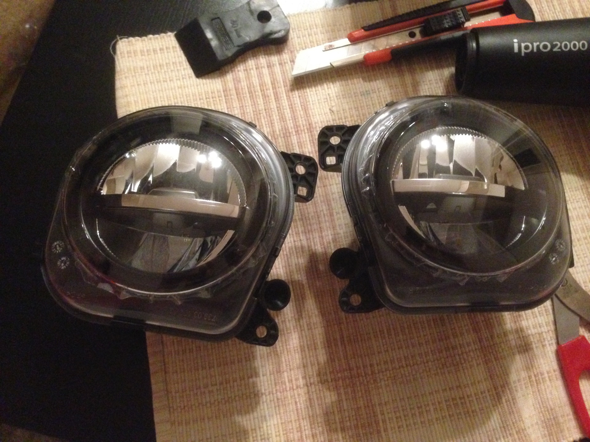 Также, прежде чем все устанавливать, я решил закатать новенькие ПТФ в бронепленку. Пол часа работы и готовый результат