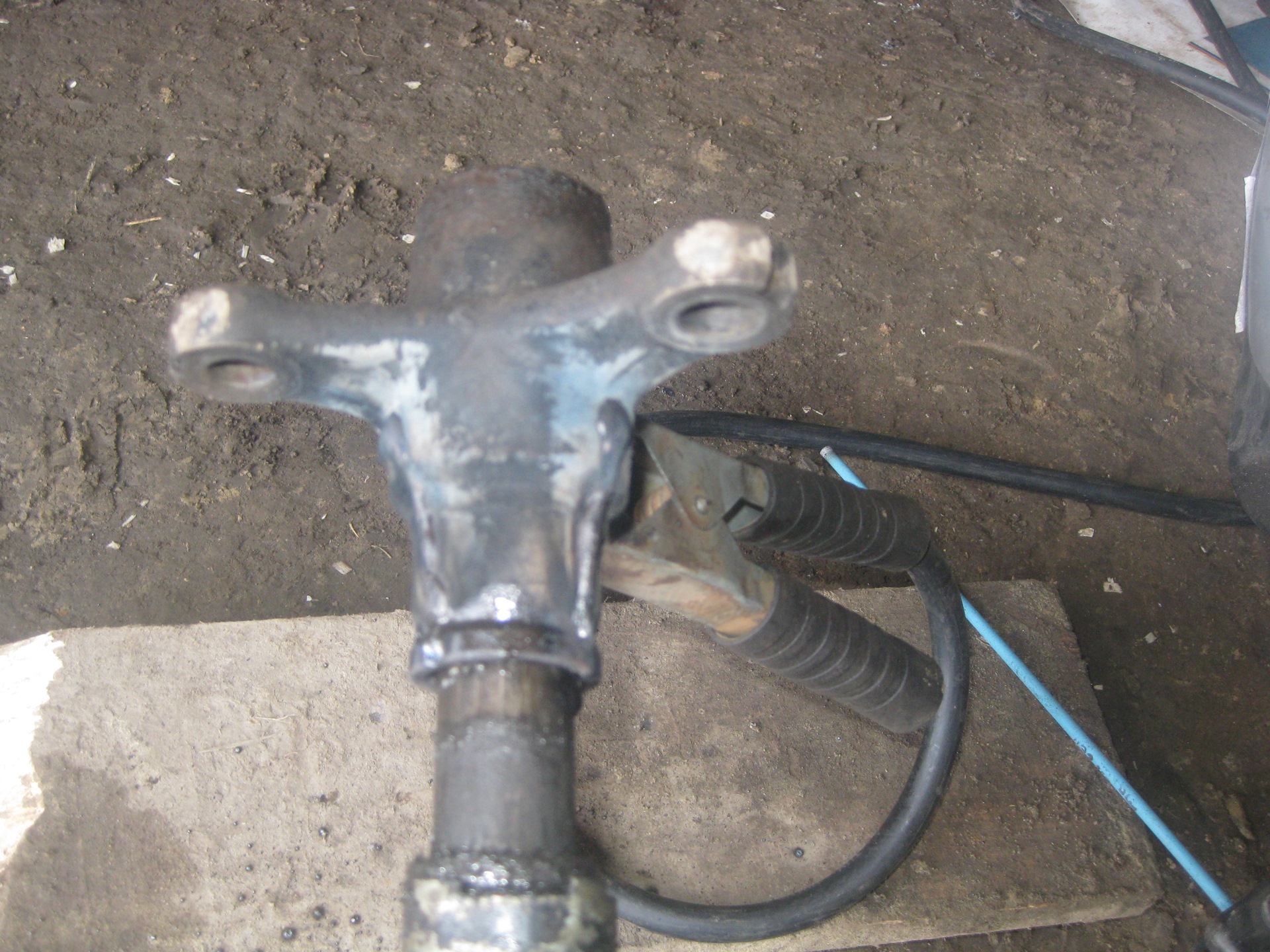 В отпуске, когда было нечем занять руки полез разбираться с люфтом на шлицевом и вертолете. Вертолет люфтил, было подозрение на подшипник, но выяснилось, что ослабла гайка вертолета на КПП, как это произошло фиг знает, контрящая шайба была загнута, но вертолет ощутимо люфтил. Когда разобрал гайка выкрутилась от руки, после затяжки люфт ушел. При проверке люфта был обнаружен износ шлицевого соединения на кардане, хоть и мазал его периодически. Изначально подумал что все очень плохо, но сняв кардан понял, люфт не большой, еле заметный, основной был на вертолете из-за гайки. Способ ремонта шлицевых соединений подсказал дядька — он заключается в сварке. Дело в том, что сварка электродами прогревает и тянет металл, так вот надо варить снаружи маму шлицевого в 4-х местах продольно, при этом папа должен быть внутри, а то потом можно и не одеть, наваренный метал стачивается болгаркой дабы не нарушить балансировку. В идеале надо варить кольцами через 1-1,5 см (так обеспечивается усадка всех шлицов) и закалять в масле чтобы не было усадки в будущем иначе ремонт временный. Поскольку у меня люфт был незначительным, я варил продольно в 4-х местах перпендикулярно др. др. без закалки. После усадки сбивать маму пришлось молотком, она ужалась в диаметре. Обточил болгаркой, приварил оторванный пыльник к вертолету, затянул его гайку туго. Как итог люфтов в этом узле больше нет. Самое сложное было снять штопор центрирующей втулки и сбить ее ибо она плотно напресована.