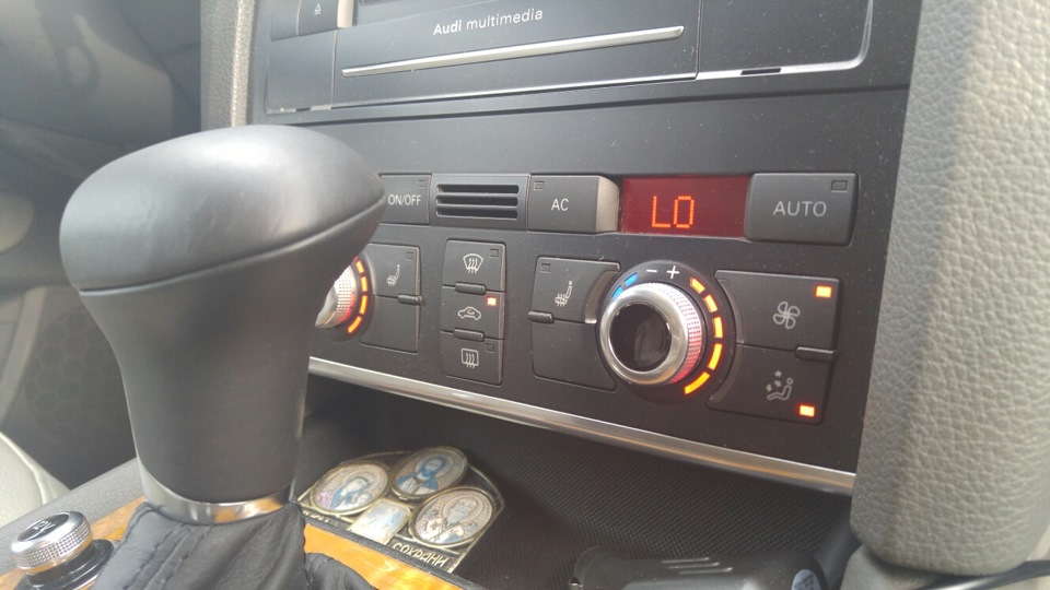 Выключаем кондиционирование (АС). Температура на максимум, обдув на максимум и в ноги! Включаем рециркуляцию! 10 минут прогреваем систему — высушиваем!