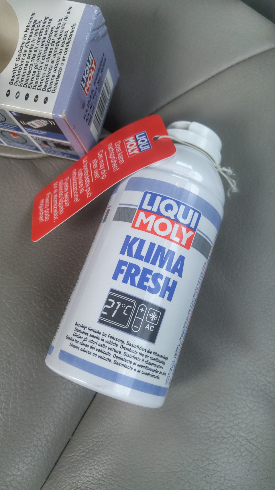 Трясём балончик, и ставим его в коробочку! Если ставить как на коробке нарисовано, то струя долбит в кромку бардачка и там образуются капли! Поставил вот так, чтобы распыление было направлено в воздухозаборник!