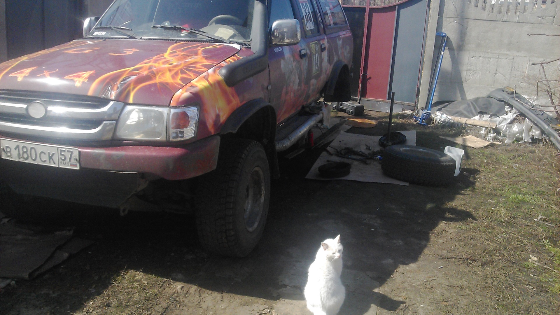 Заменил недавно подшипники задних полуосей и конечно поменял запорные втулки на новые и стопорные кольца. Брал Китайские(кооперативные), на чём собственно и обжёгся! Появился люфт колеса, биение и вибрация, запорная втулка попалась из сырца, слетела и тем самым образовался люфт подшипника и его разбило(при чём разбило внутреннюю обойму подшипника-он тоже изготовлен из сырца) Полуось пострадала и образовался буртик! Буду ставить новый подшипник(тойота) и старую запорную втулку, а пока поставил запасную полуось в сборе! Остальное на фото и видео! Да, ещё поставил на своё место обратно "юбку пластмассовую" -нижнюю часть бампера, а также поменял сальник полуоси и прокачал тормоза по кругу и сцепление! Да и помогал мне в этом деле верный помощник кот Белый-он есть на фото!