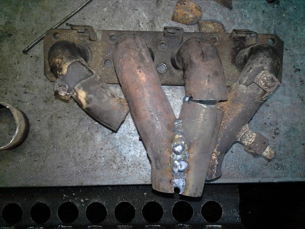 Ах да вот сток коллекторкручу верчуПромежуточное фото, делаю 1-4 и 2-3 для твинскроллтак выглядело на TD04L до декабря. Дулось с 2500-2700 в стоковом железе за глазаБлин на TD05 уже актуатор не поместился, как видите вместо него пружинка, итог более поздний выход на буст плюс он плавнее это уже 3000-4000Турбинка у токаряБыла VF37 станет TD05Спереди Greddy T518 катридж китай TD05H-18G жопогорячка уже от VF37, на фоне видно выхлоп 80мм и сильфон 100мм <img src=В конце воскресения, вроде готово.Вот такой даун пайп, три отвода 76 потом переход на 100 потом сильфон камаз затем переход на 80мм и собственно средняя часть, как видно пока без упоров под резиновый подвес, но фланец уже тутачки.Фото примерку средне-задней части выхлопа.