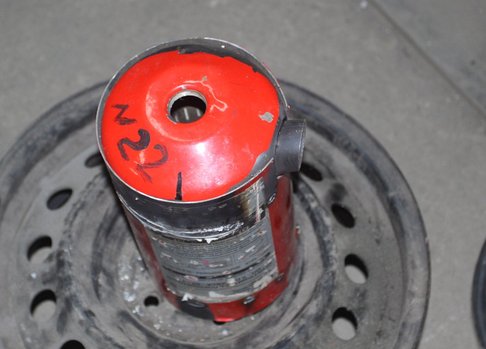 Корпус взяли просто от подходящего огнетушителя. Внутреннюю часть можно сказать вколачивали и предельно плотно набивали негорючим материалом.