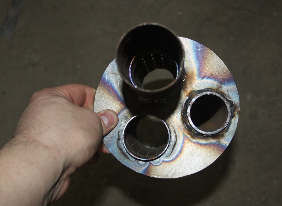 Трубы с просечками Ø51мм взяли из универсального резонатора турботема, я их уже не раз применял в переделке выхлопа на свою машину и машину отца.