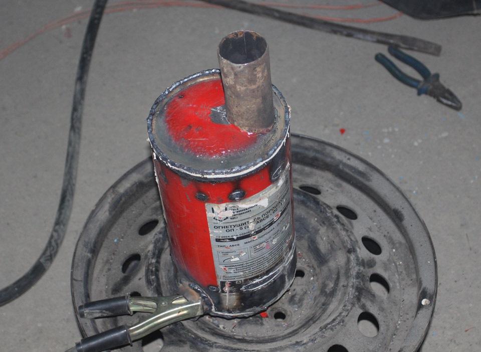 Очень правильная идея насчет глушителя. Я тоже буду делать из огнетушителя.