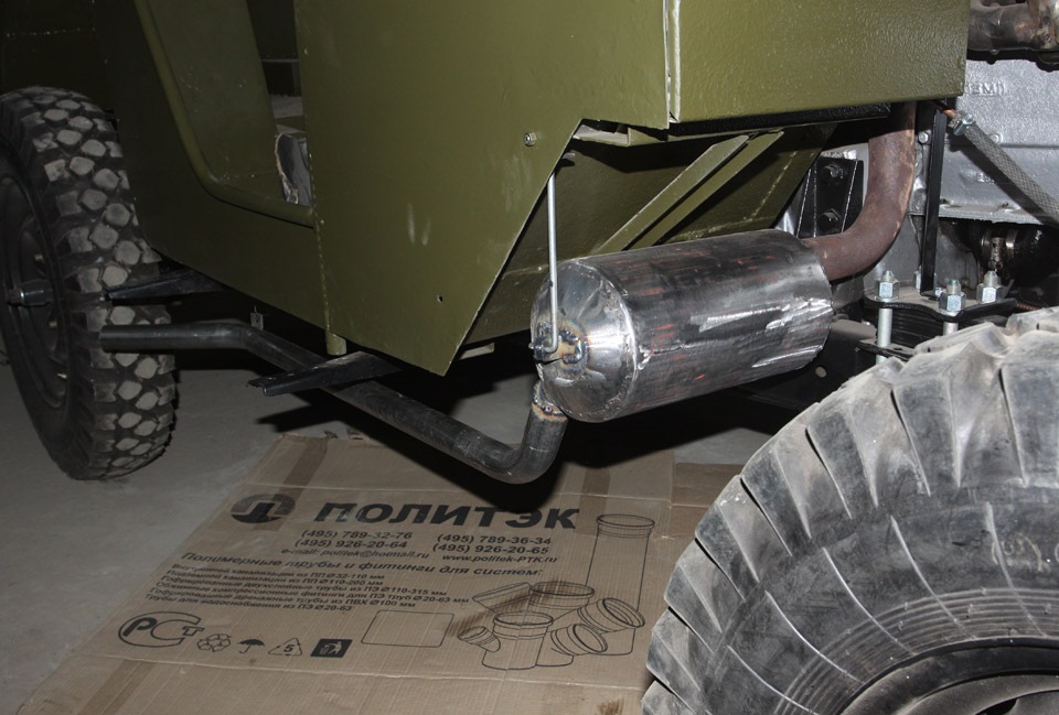 Всё хорошо. Молодца. Так как на ГАЗ-67 глушитель хорошо виден, он является ещё и элементом внешнего вида, и старание к аутентичности оправдан. Казалось бы мелочь, но кронштейн крепления, прошу прощения, к Вас сделан не верно. Если интересно, вышлю снимок. Я купил для своего ГАЗ-67 на Украине. Дорого, но сделано на 5+